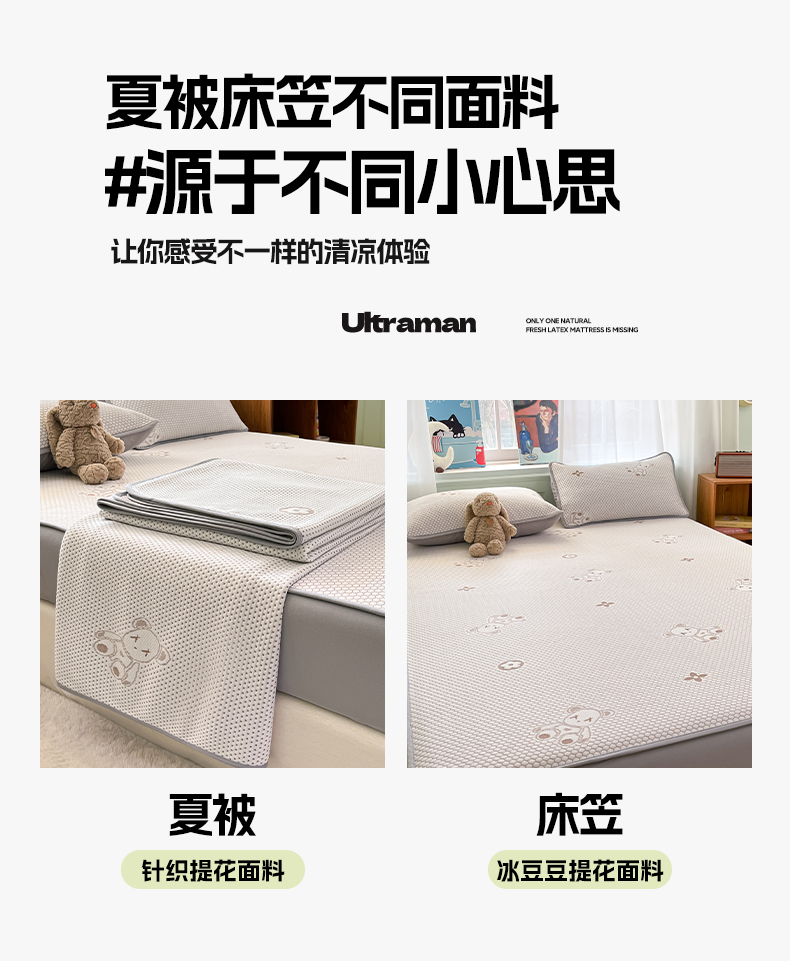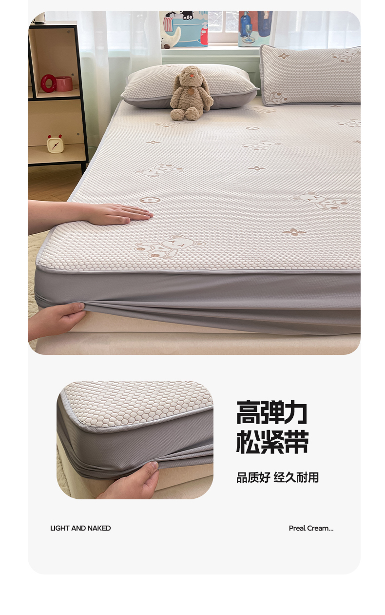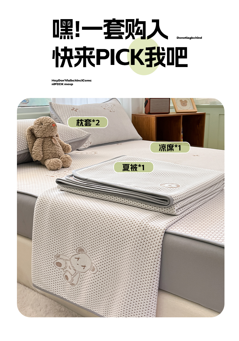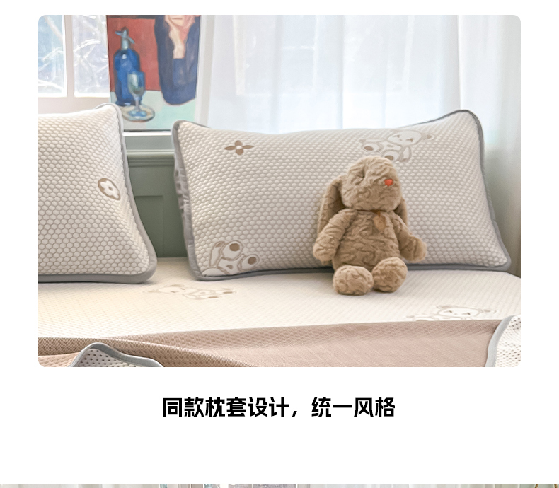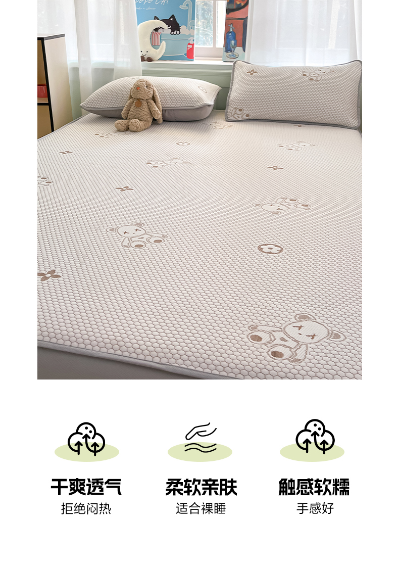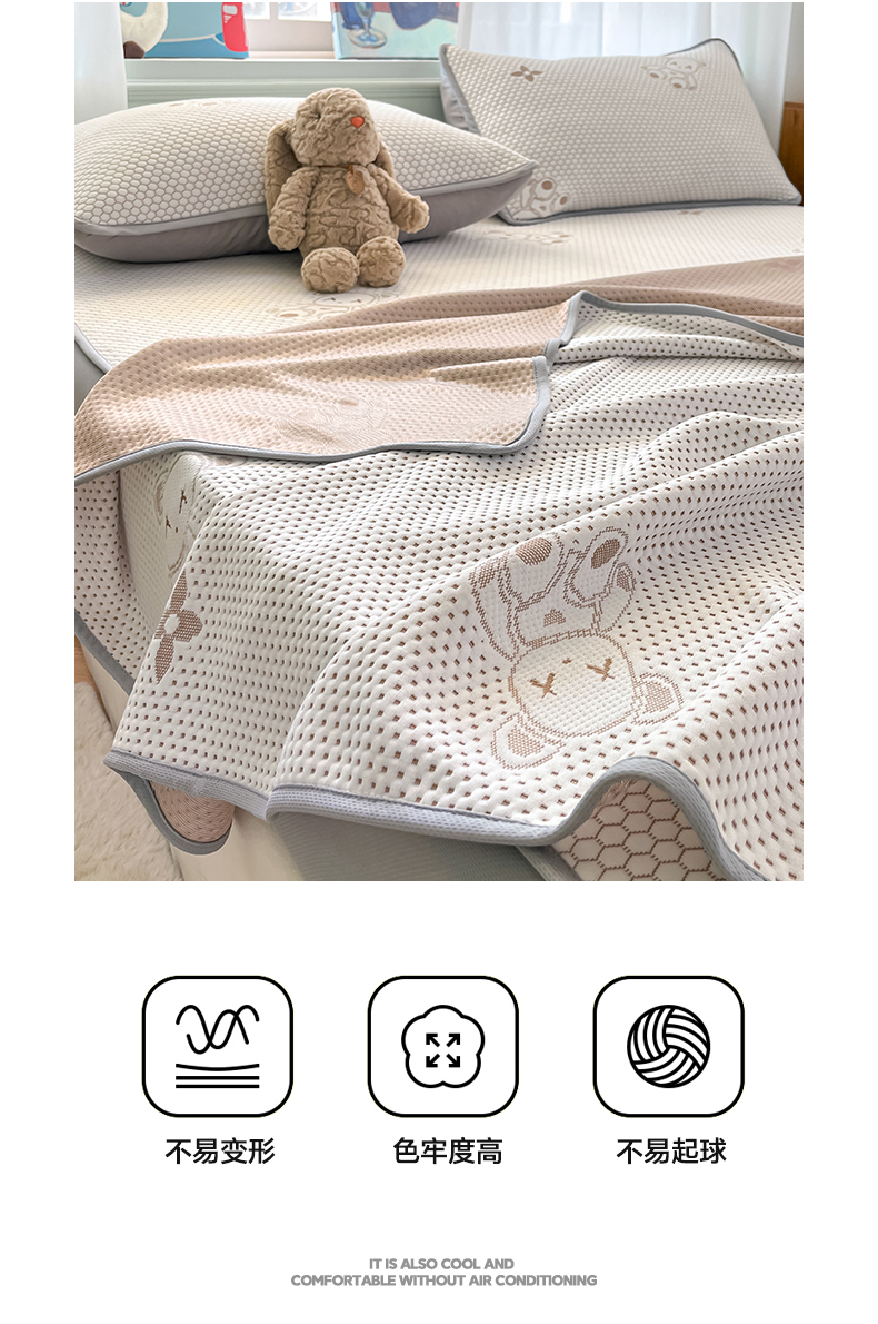 商品名称:绘萱家居 2025爆款冰凉豆豆凉席夏被四件套三件套床笠款冰丝软席子 暴力熊-咖