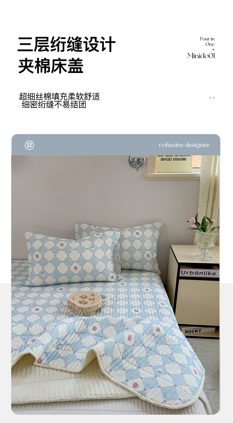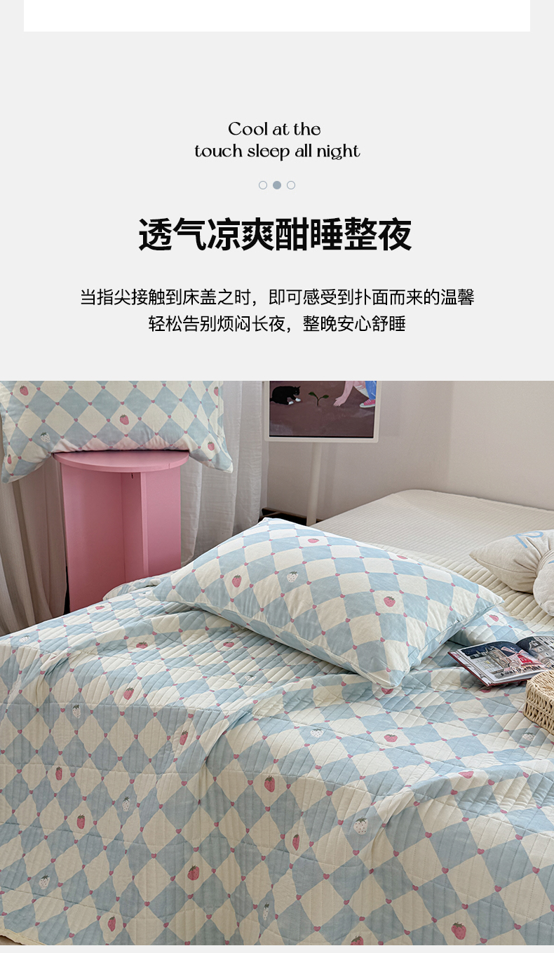 商品名称:TT.one 塔塔家居 2025新款全棉双层纱贝壳边夏被系列 床盖·草莓酱蓝