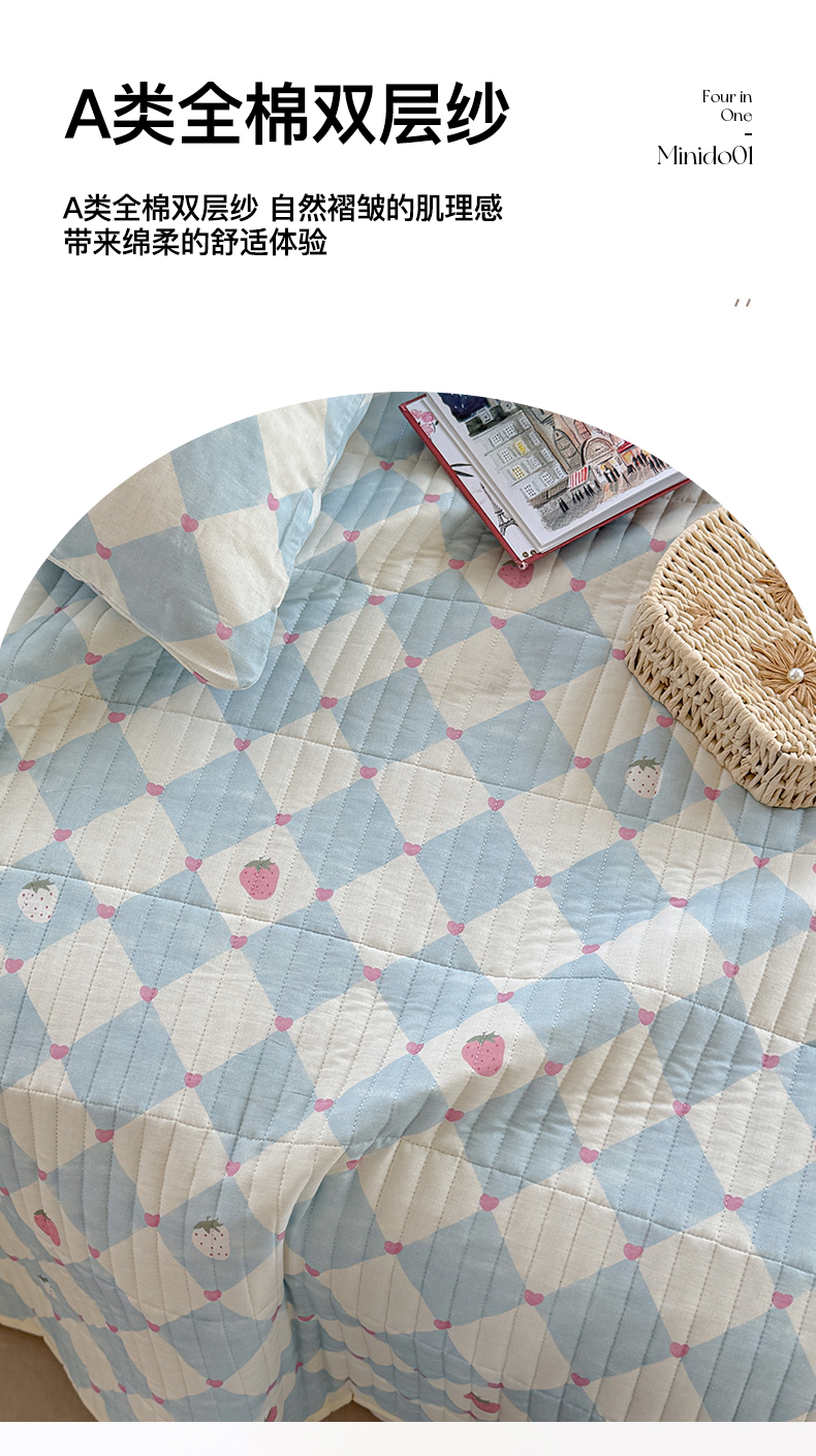 (总)TT.one 塔塔家居 2025新款全棉双层纱贝壳边夏被系列,半夏,草莓酱·蓝,晨露,春和日丽,春日派对,花序,茉香,南岛日记,趣味豆豆,睡睡熊,素予,小樱桃