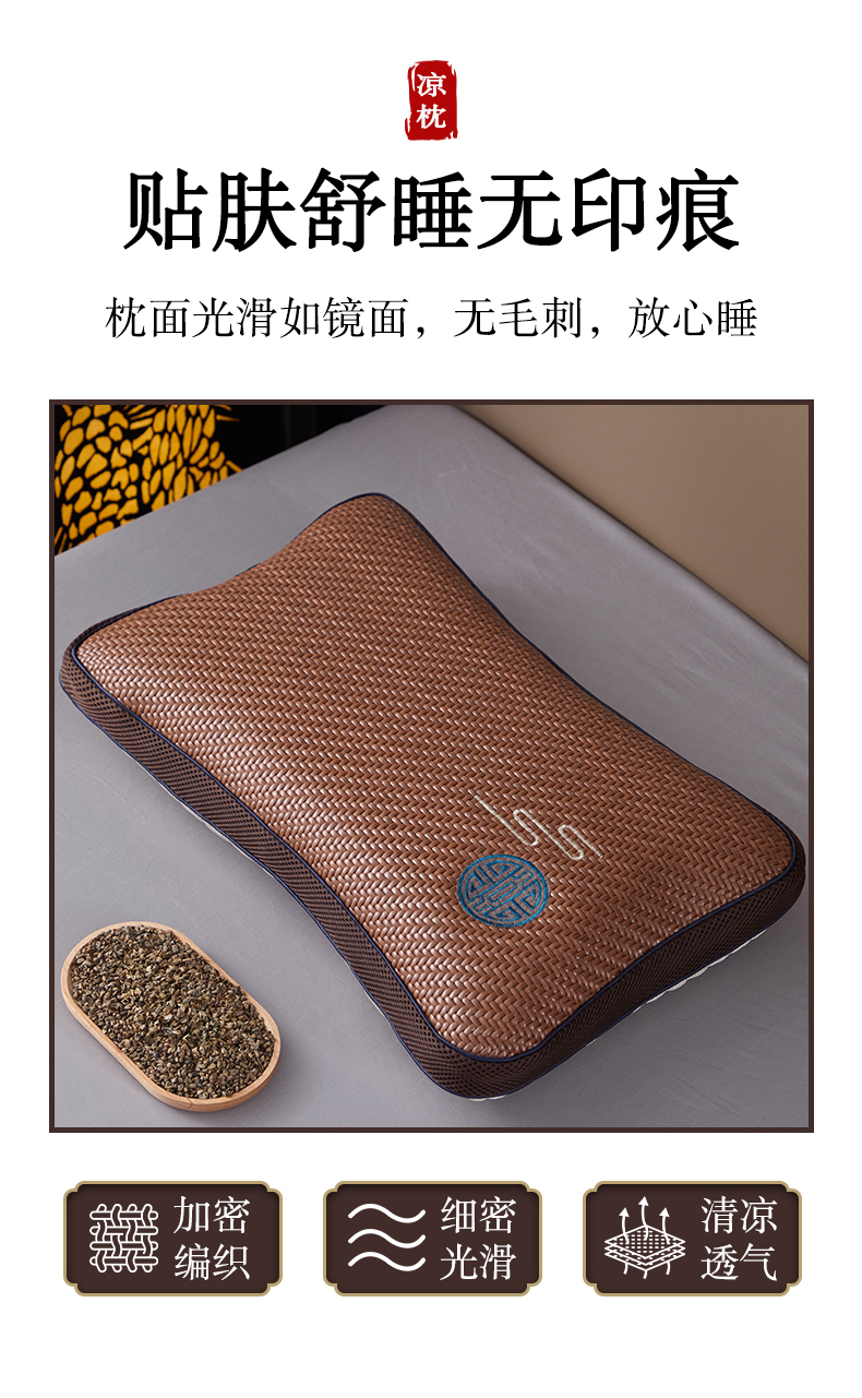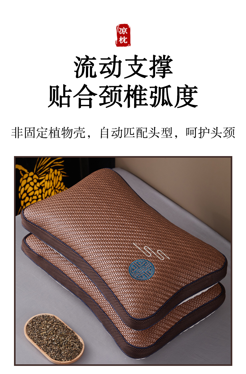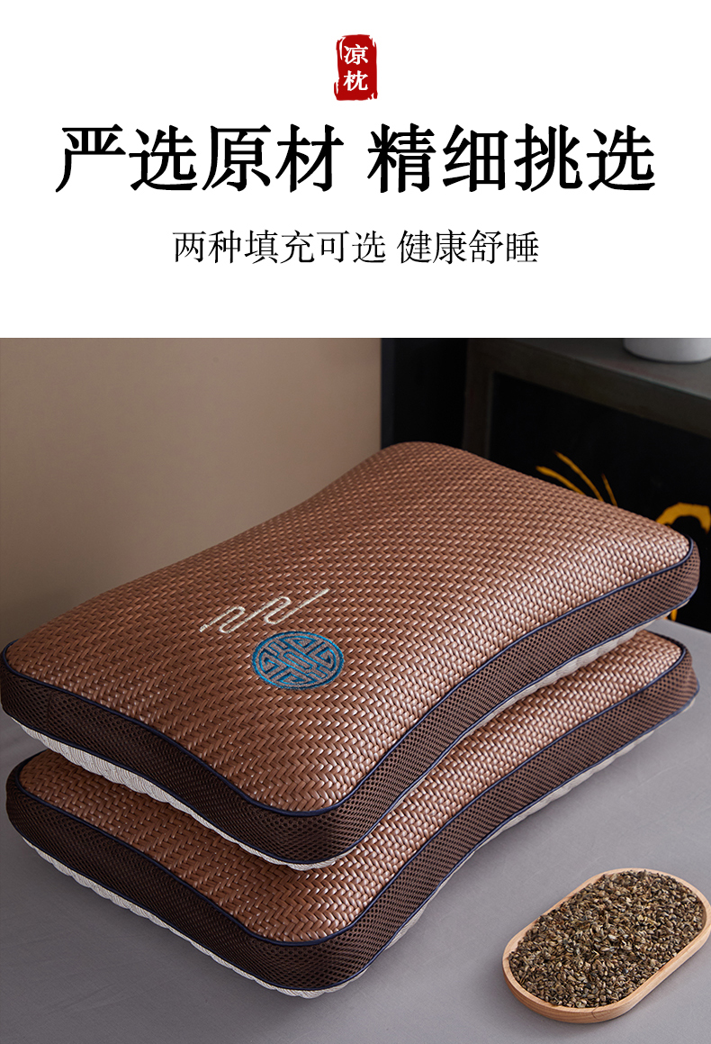 PE藤护颈冰凉枕-咖色【荞麦枕】