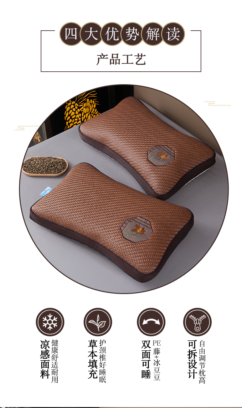 冰豆豆+PE藤双面枕-福临门【荞麦枕】