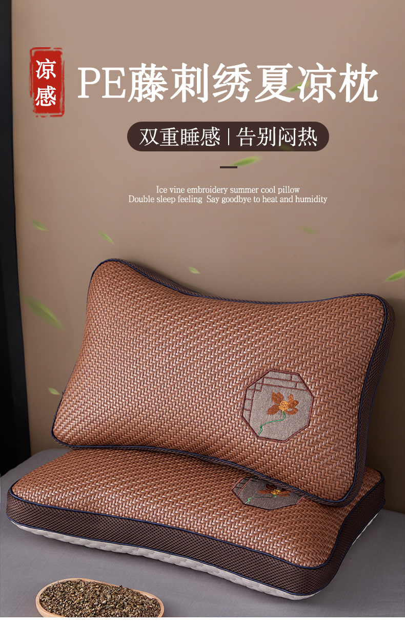 商品名称:(总)织布人 2025新款荞麦枕夏季凉感冰藤面包枕PE藤夏凉枕成人家用颈椎枕硬枕35*55cm