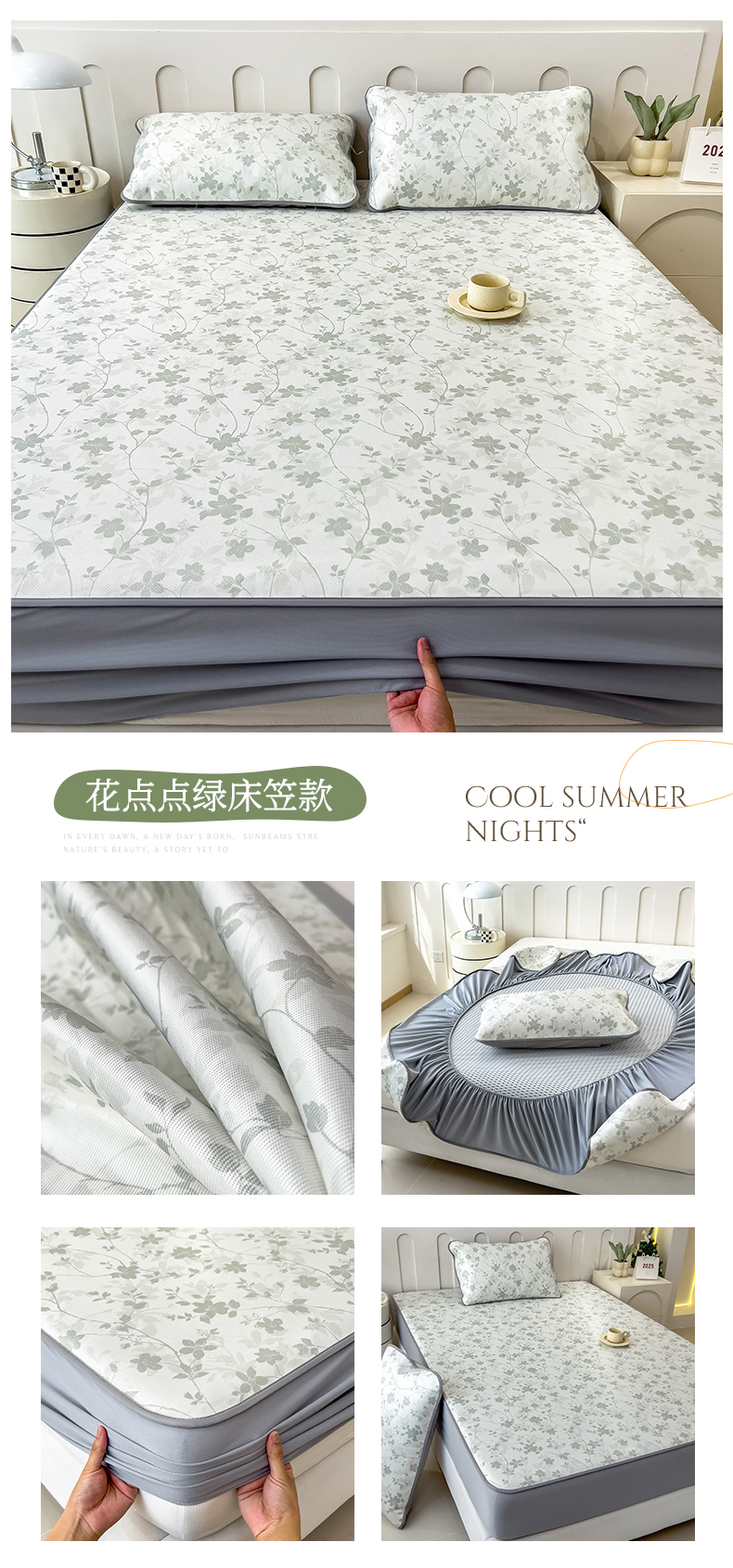 商品名称:2025年新款600D丝滑冰丝凉席-床笠款 花点点绿