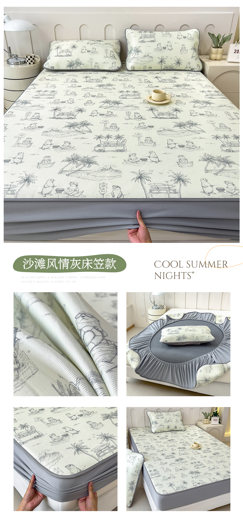 2025年新款600D丝滑冰丝凉席-床笠款 沙滩风情灰