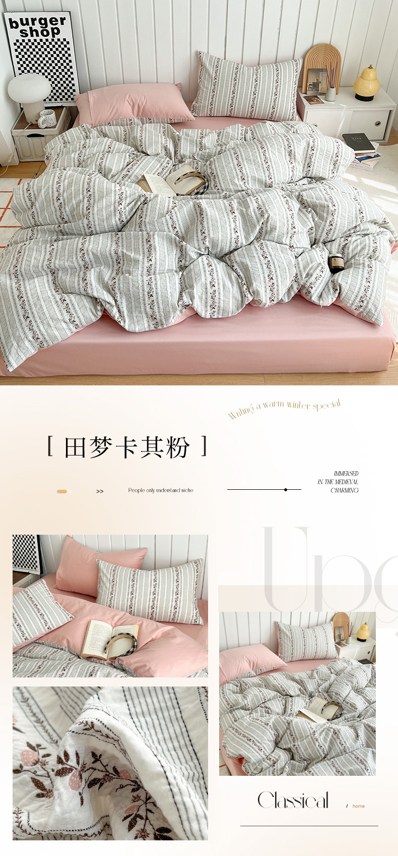 当前位置: 91家纺网 > 商品网购 > 床上用品 > 凉席 > 其他凉席 > 2025年新款三层纱田园风套件系列 田梦卡其粉