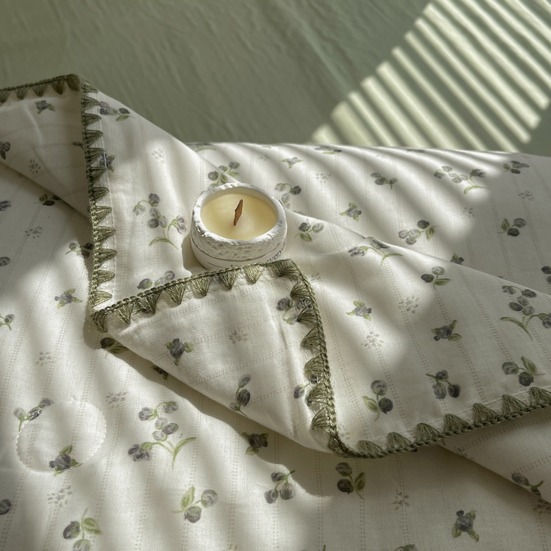 (总)塔塔 2025新款法式田园全棉针织棉花边印花夏被,花奈,假日,洛可可,漫恋,木槿,浅汐,小樱桃,洋兰