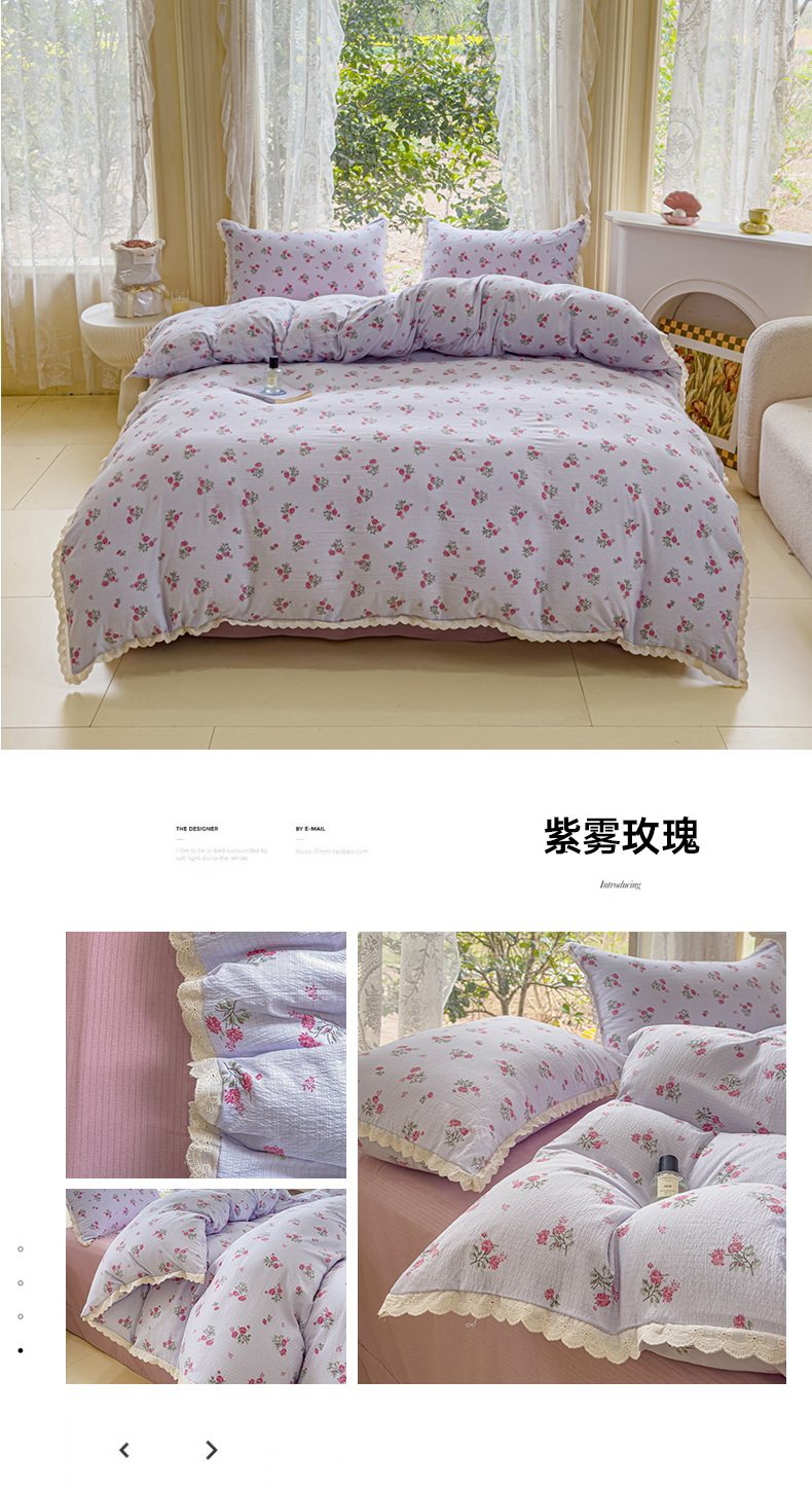 可思家纺 2025新款法式皱皱纱四件套 紫雾玫瑰