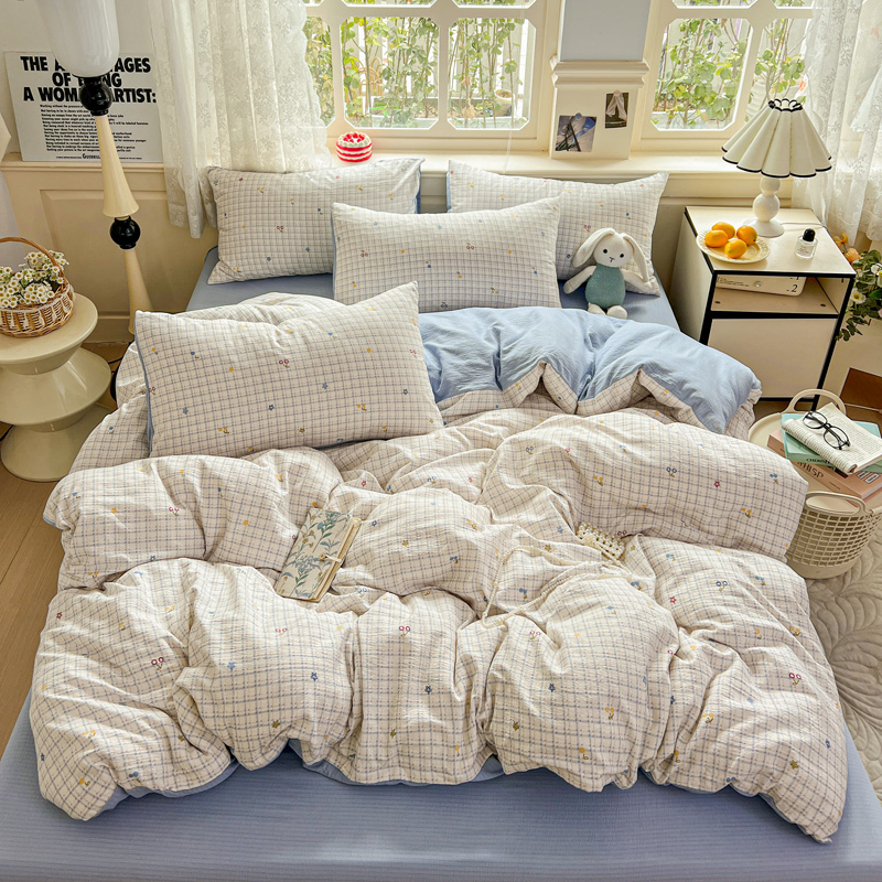 (总)一比一家纺 2026新款古法水洗仿棉云感纱A类四件套,知秋,白兰地,彩波波,草莓点点,格纹狗,嗨皮狗,赫莲娜,花千朵,花絮,酱果,蓝小格,莉莉安,梦幻灰,南瓜果果,葡萄,浅梦,森屿,疏影,甜心草莓,甜心喵,条纹狗,童趣,小黄花,小木马,小时光,小幸运,修修狗,薰衣草,灰樱桃,樱桃熊,鱼多多,组合图仅做展示不可下单