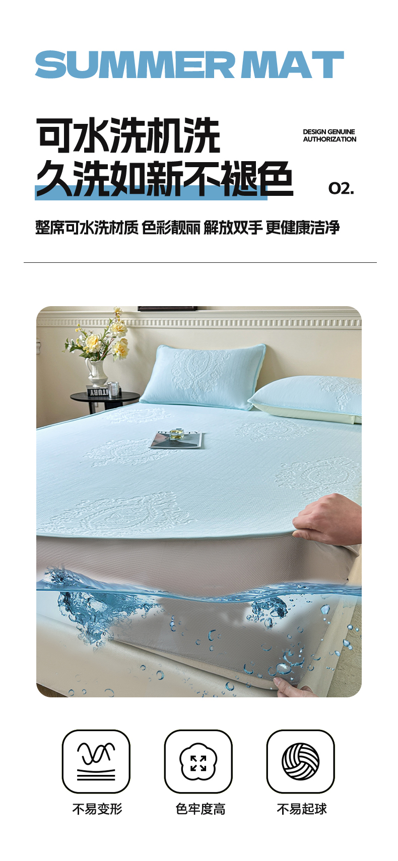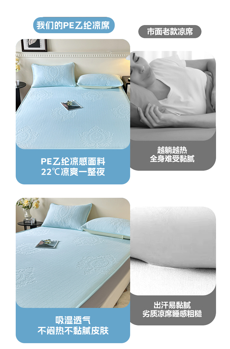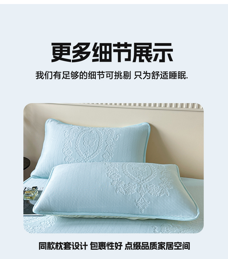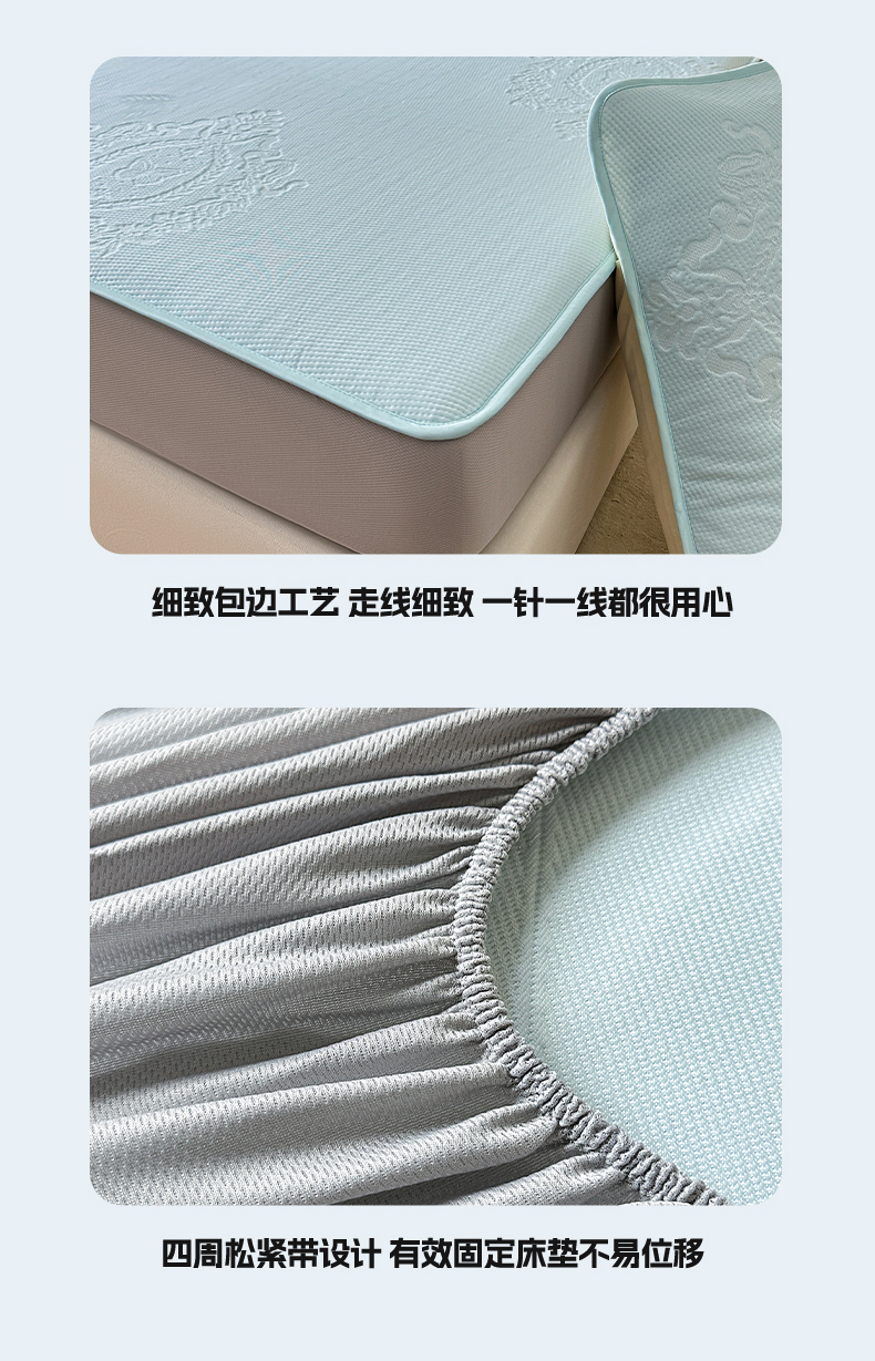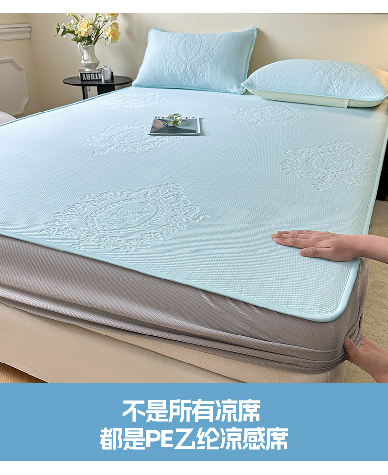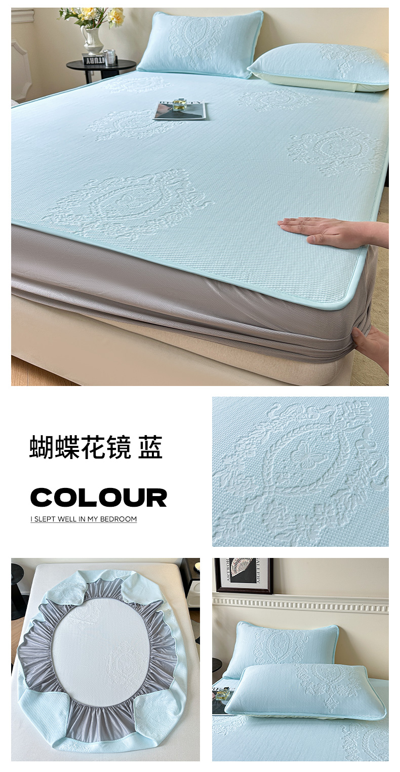 商品名称:布卢姆床垫2025新款A类PE乙纶冰豆豆床笠款凉席 蝴蝶花镜 蓝