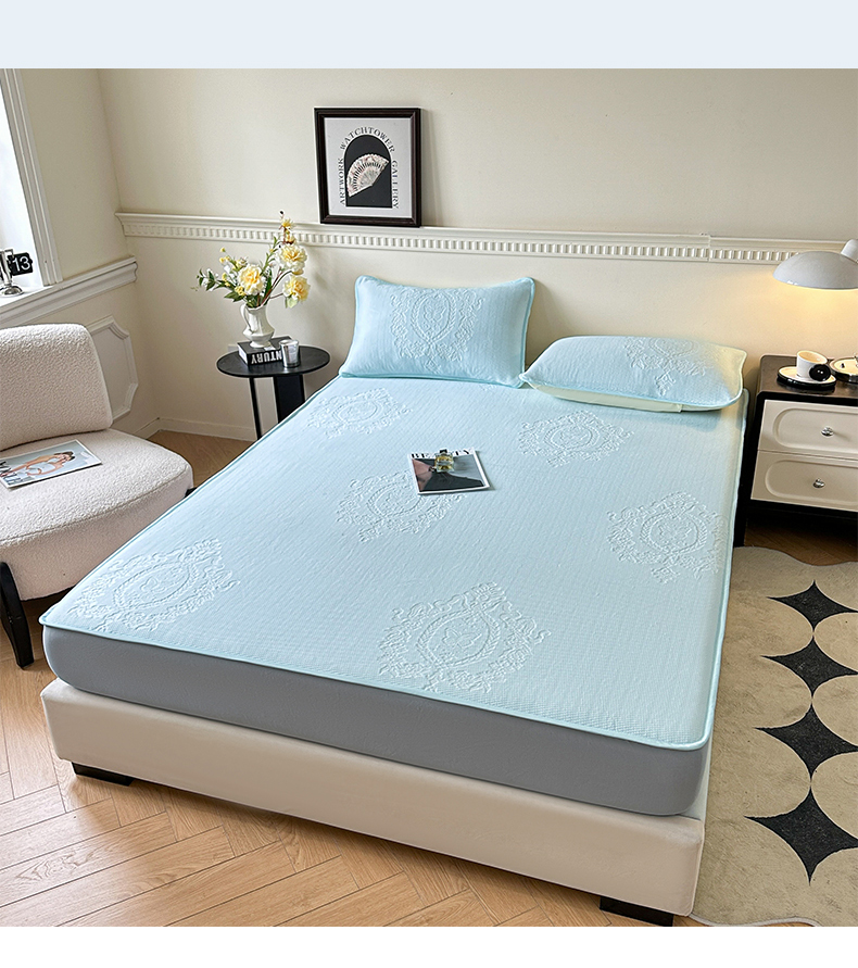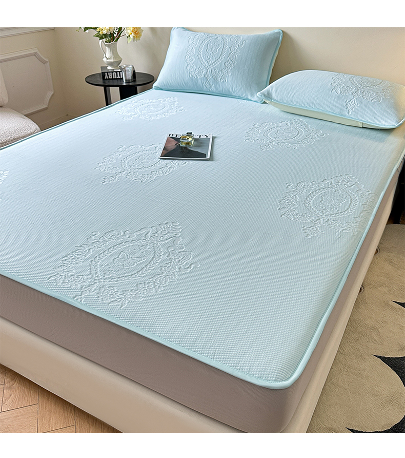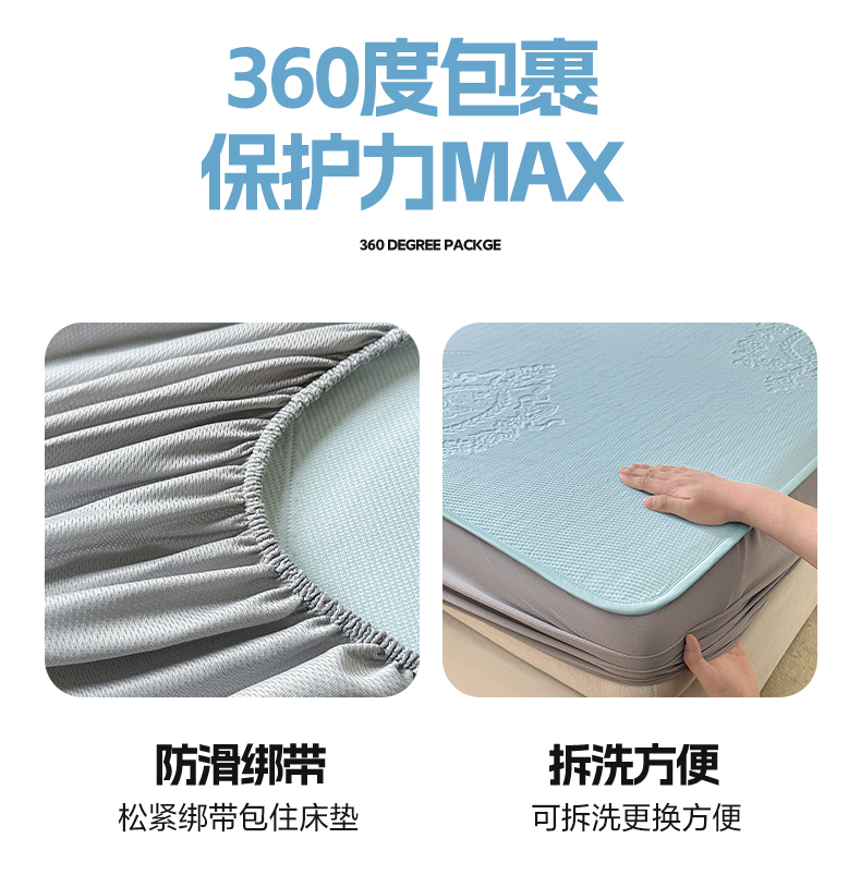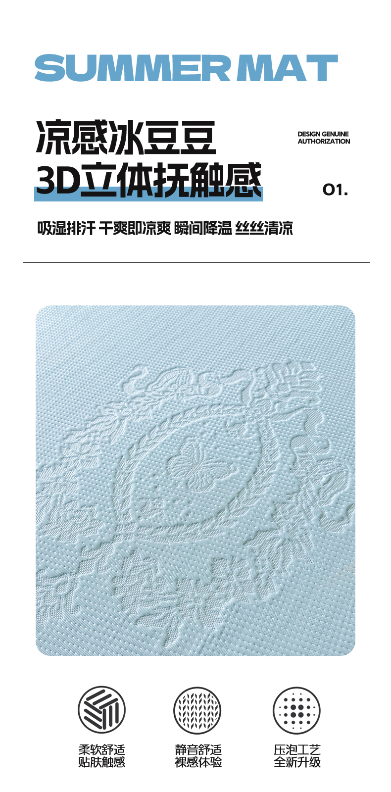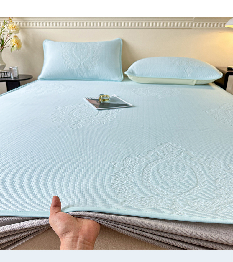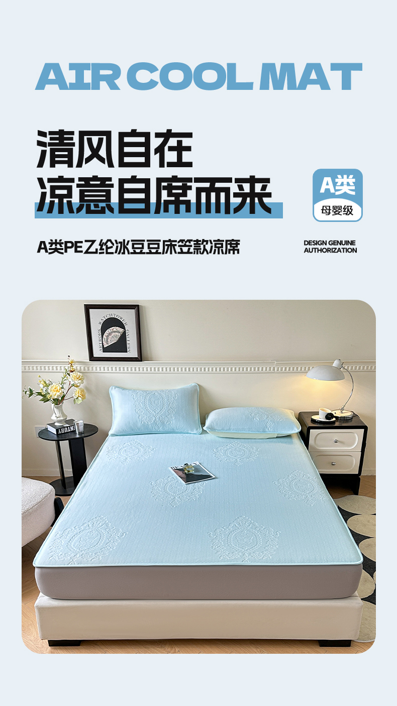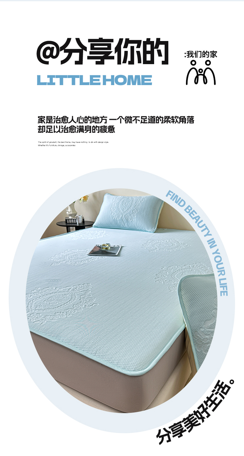 商品名称:布卢姆床垫2025新款A类PE乙纶冰豆豆床笠款凉席 蝴蝶花镜 蓝