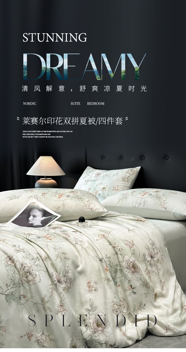 (总)慕晨 2025春夏新品莱赛尔天丝数码印花四件套莱赛尔夏被四件套天丝夏凉被直播热款,繁华-白,繁华-粉,芳馨-兰,芳馨-绿,金蕊,锦葵,兰琦,萌兔,秘境,沐瑶,琦梦,浅韵,柔兰,素锦,叶澜,雨薇,竹影,紫菱