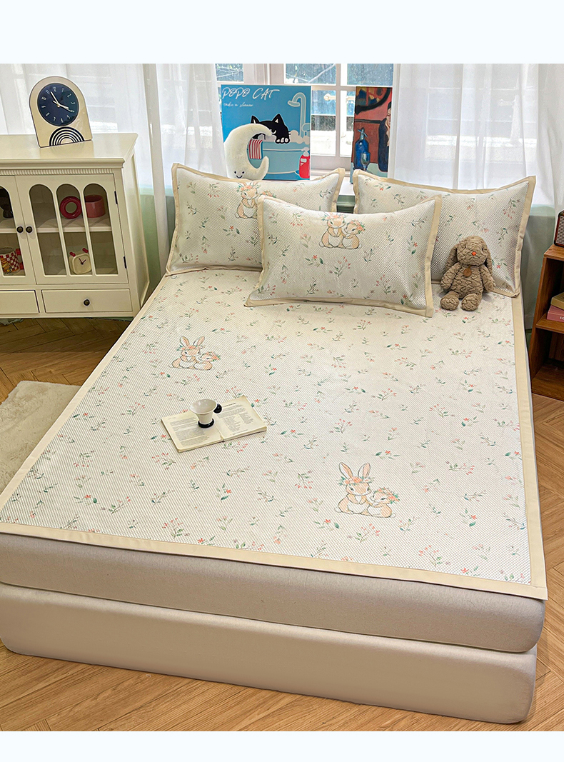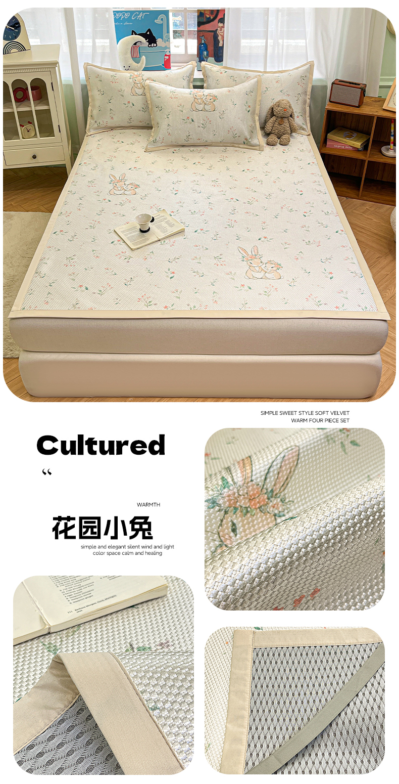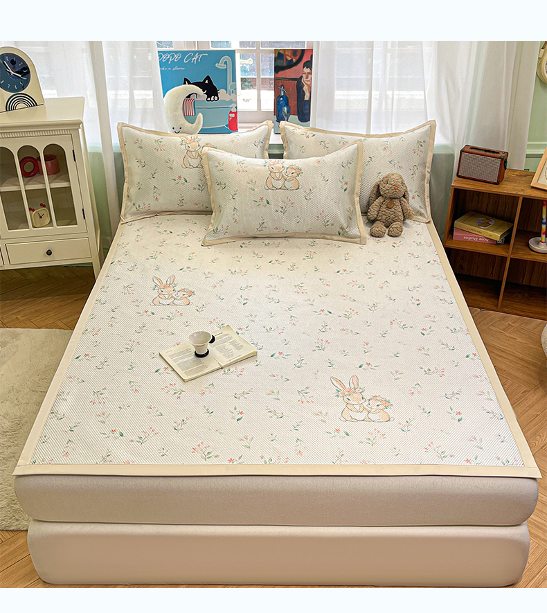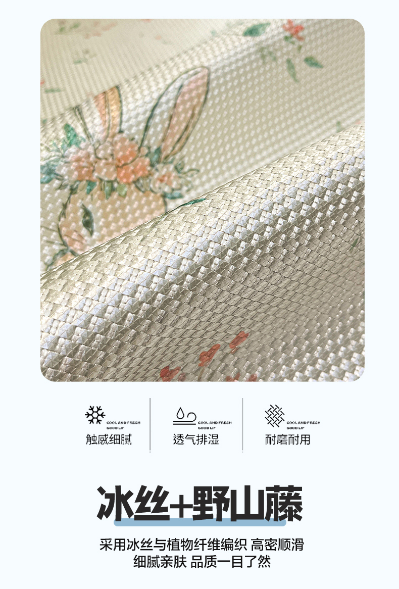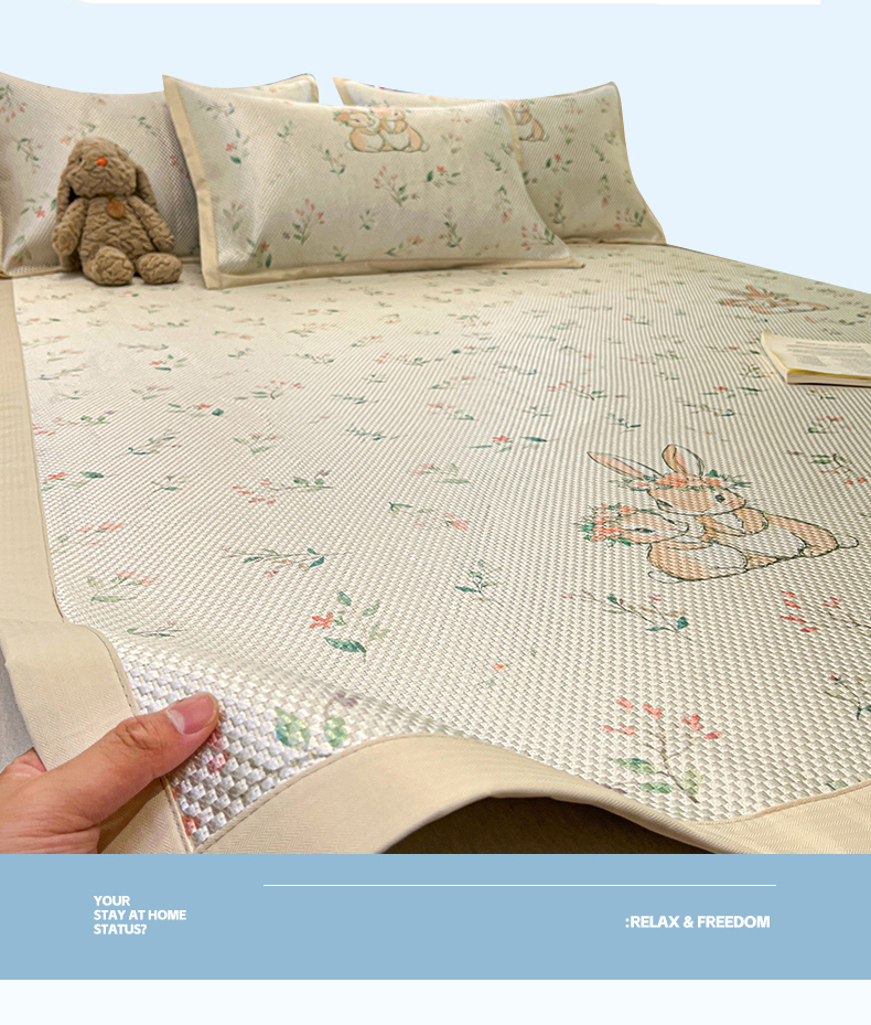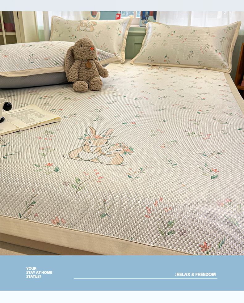 商品名称:布卢姆床垫2025新款A类数码印花冰藤席夏凉席--床席款 花园小兔