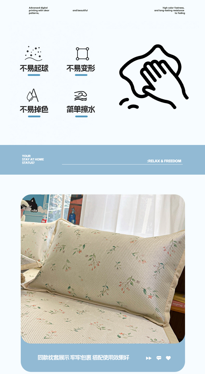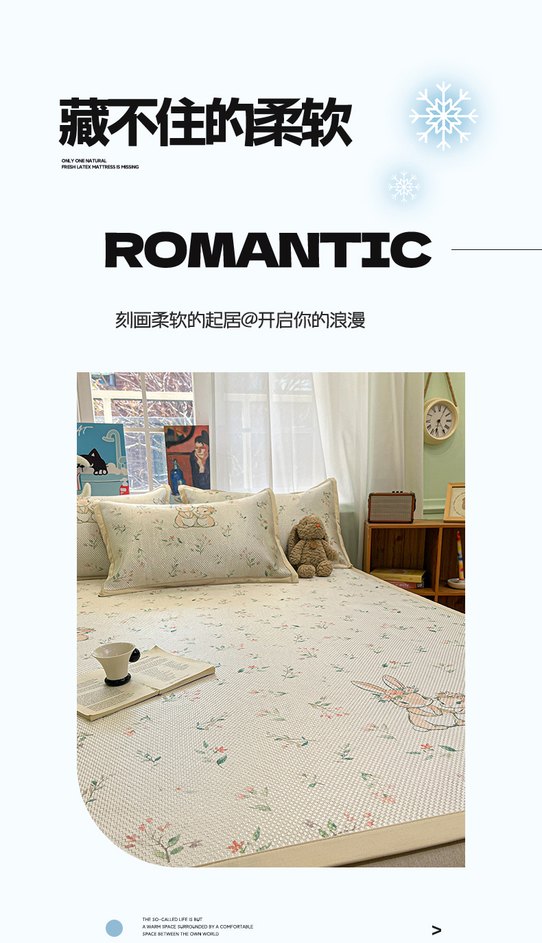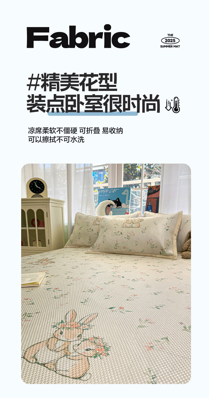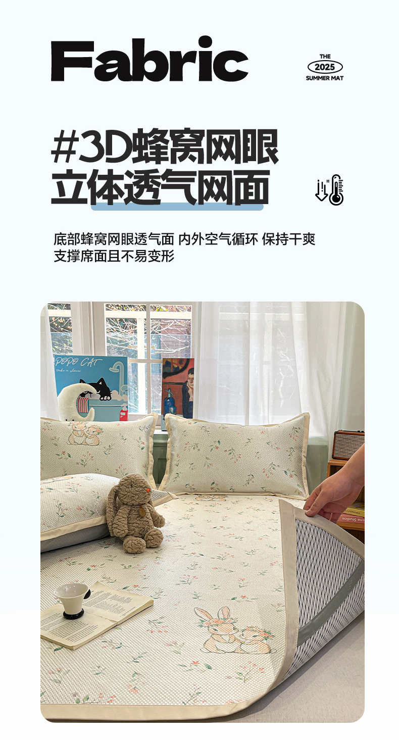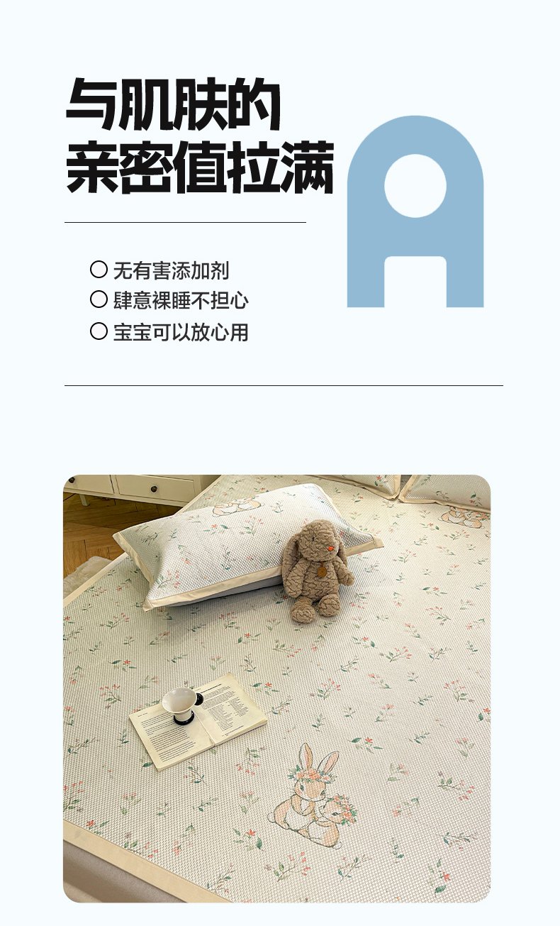 商品名称:布卢姆床垫2025新款A类数码印花冰藤席夏凉席--床席款 花园小兔