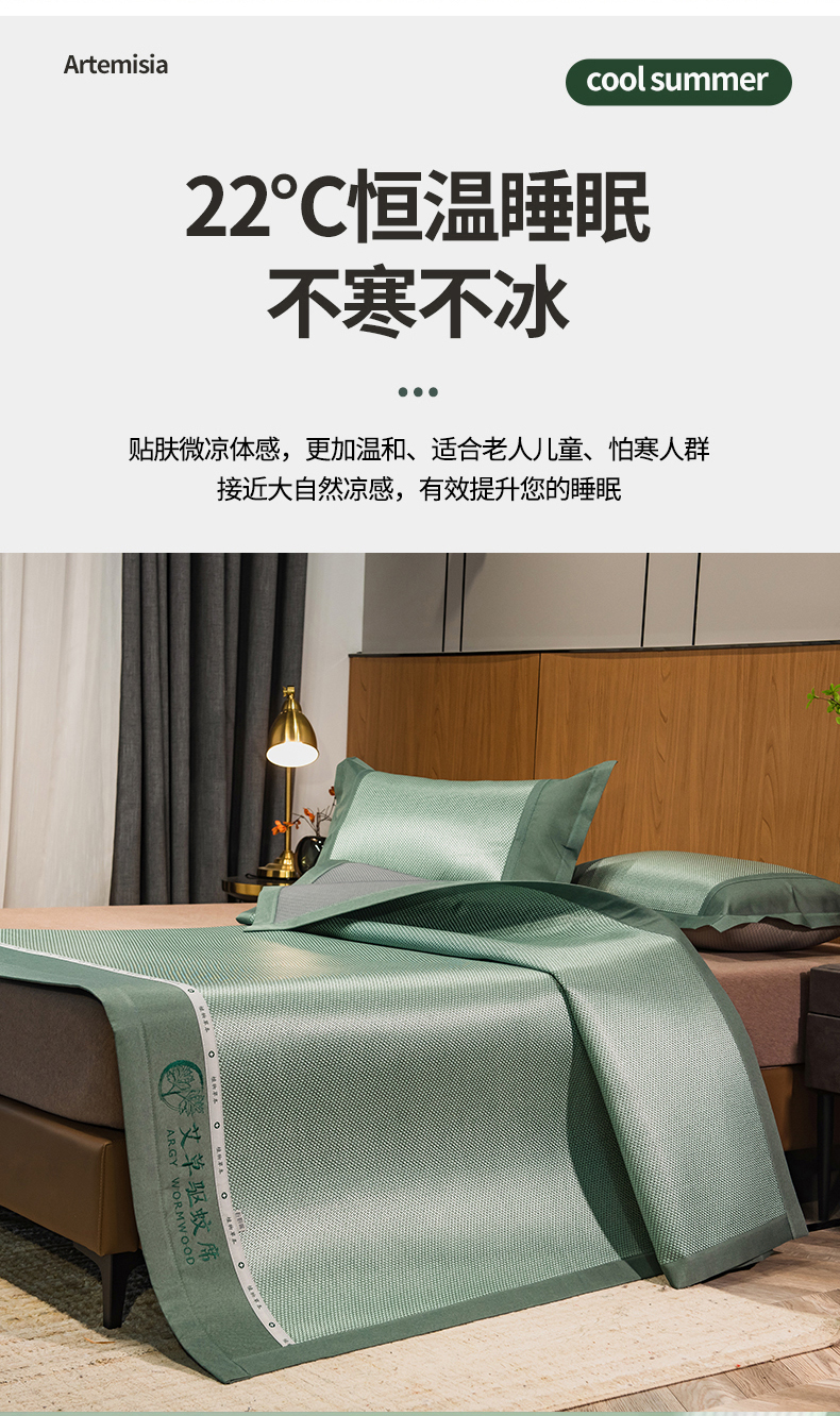 全季家居 2025新款A类抗菌防螨艾草驱蚊冰藤席凉席席子 艾草-天蓝