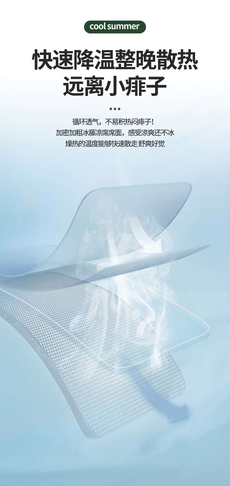 商品名称:全季家居 2025新款A类抗菌防螨艾草驱蚊冰藤席凉席席子 艾草-天蓝