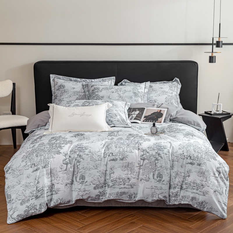 (总)鸿森林 2025新款全棉纯棉磨毛印花四件套,德芙-粉,花吟-黄,浪漫花舞-兰,露西-灰,律动-粉,落樱-粉,曼城-蓝,莫奈-灰,莫奈-咖,沙慕-蓝