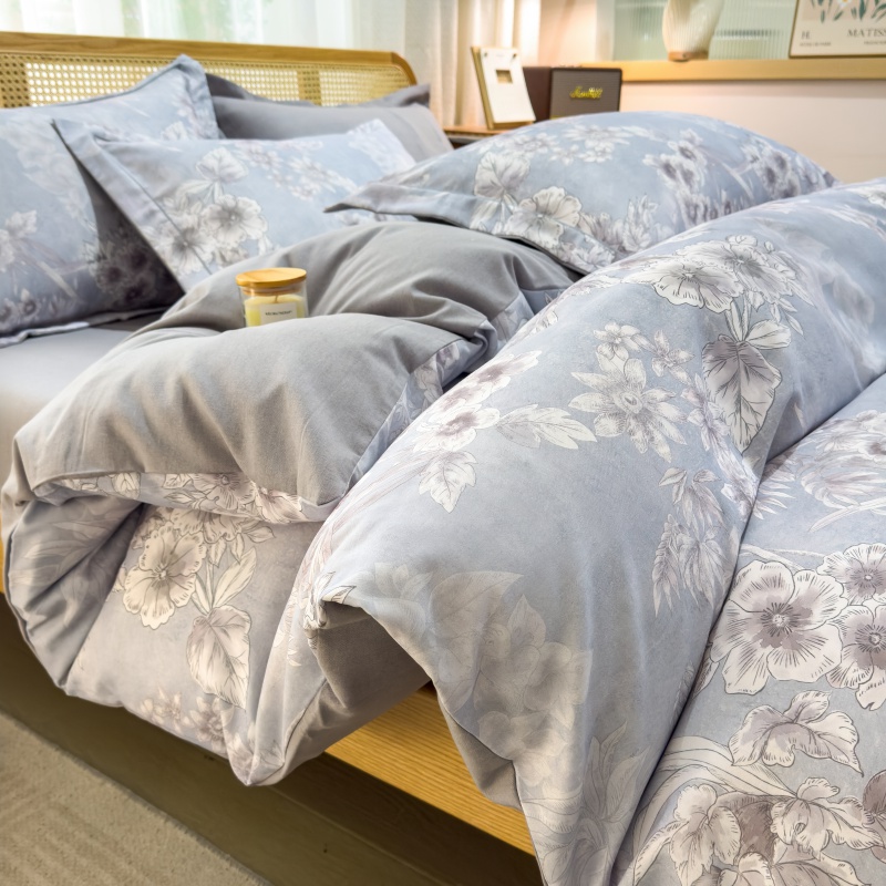 (总)鸿森林 2025新款全棉纯棉磨毛印花四件套,德芙-粉,花吟-黄,浪漫花舞-兰,露西-灰,律动-粉,落樱-粉,曼城-蓝,莫奈-灰,莫奈-咖,沙慕-蓝