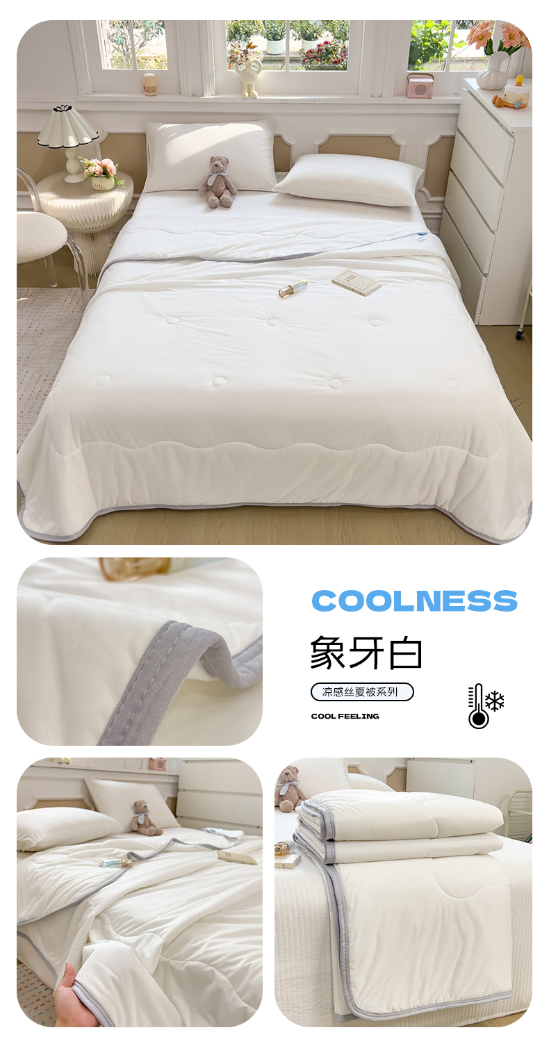 (总)鸿森林 2025新款纯色凉感丝包边夏被空调被,薄荷绿,宾利蓝,米白,皮粉,绅士灰,天空蓝,象牙白,熏衣紫,烟灰