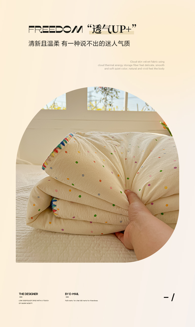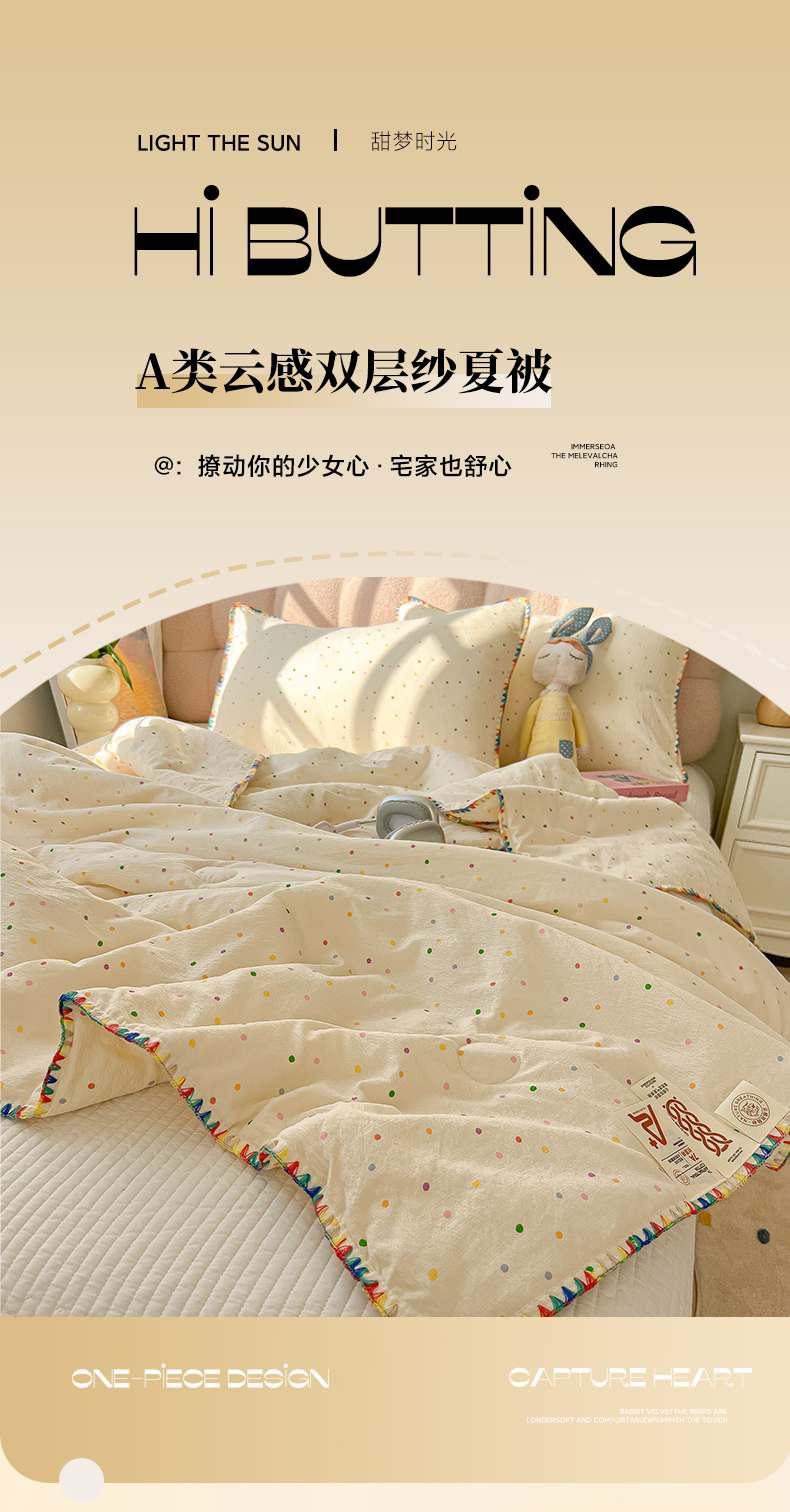 韩巢家纺 2025夏季新款A类云感双层纱花边款夏被夏凉被空调被薄被子 贝壳边-波点世界
