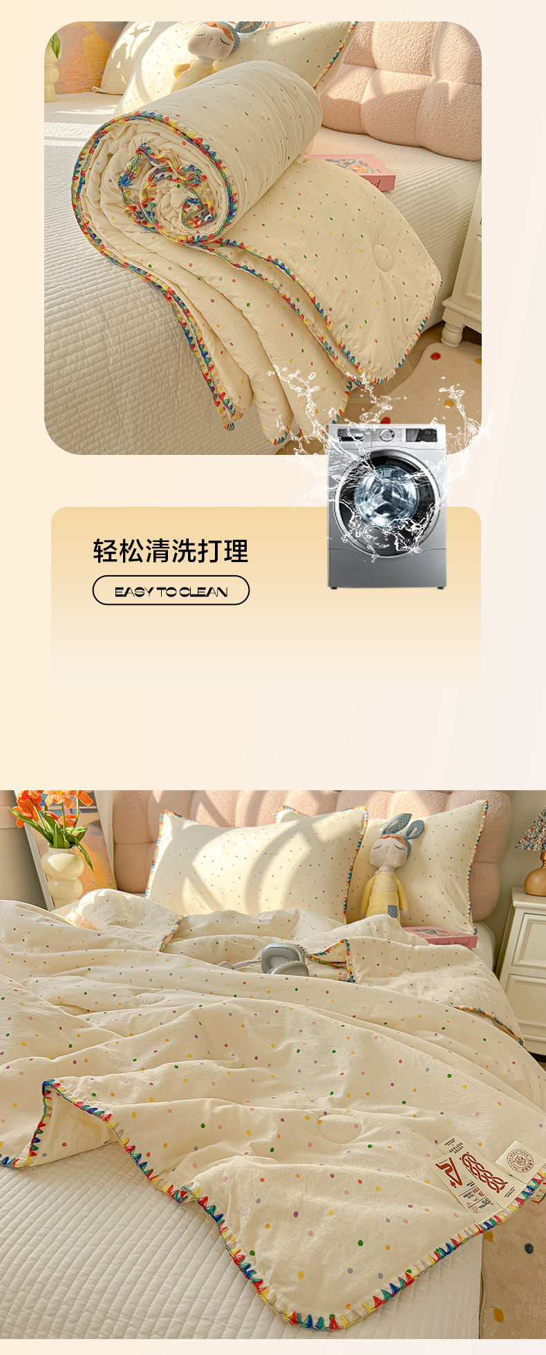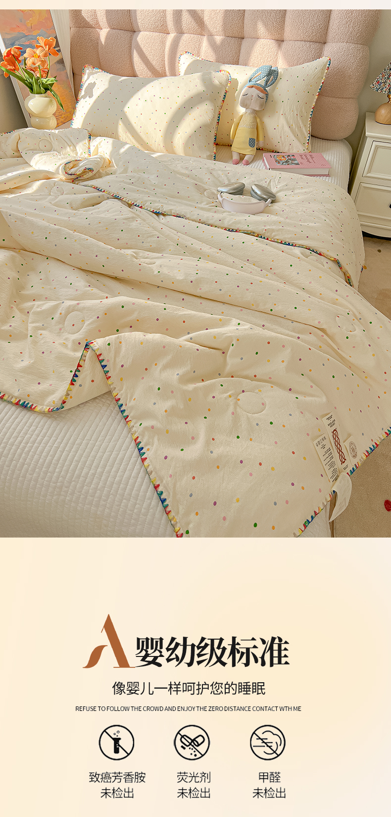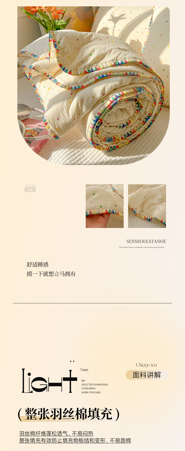 商品名称:韩巢家纺 2025夏季新款A类云感双层纱花边款夏被夏凉被空调被薄被子 贝壳边-波点世界