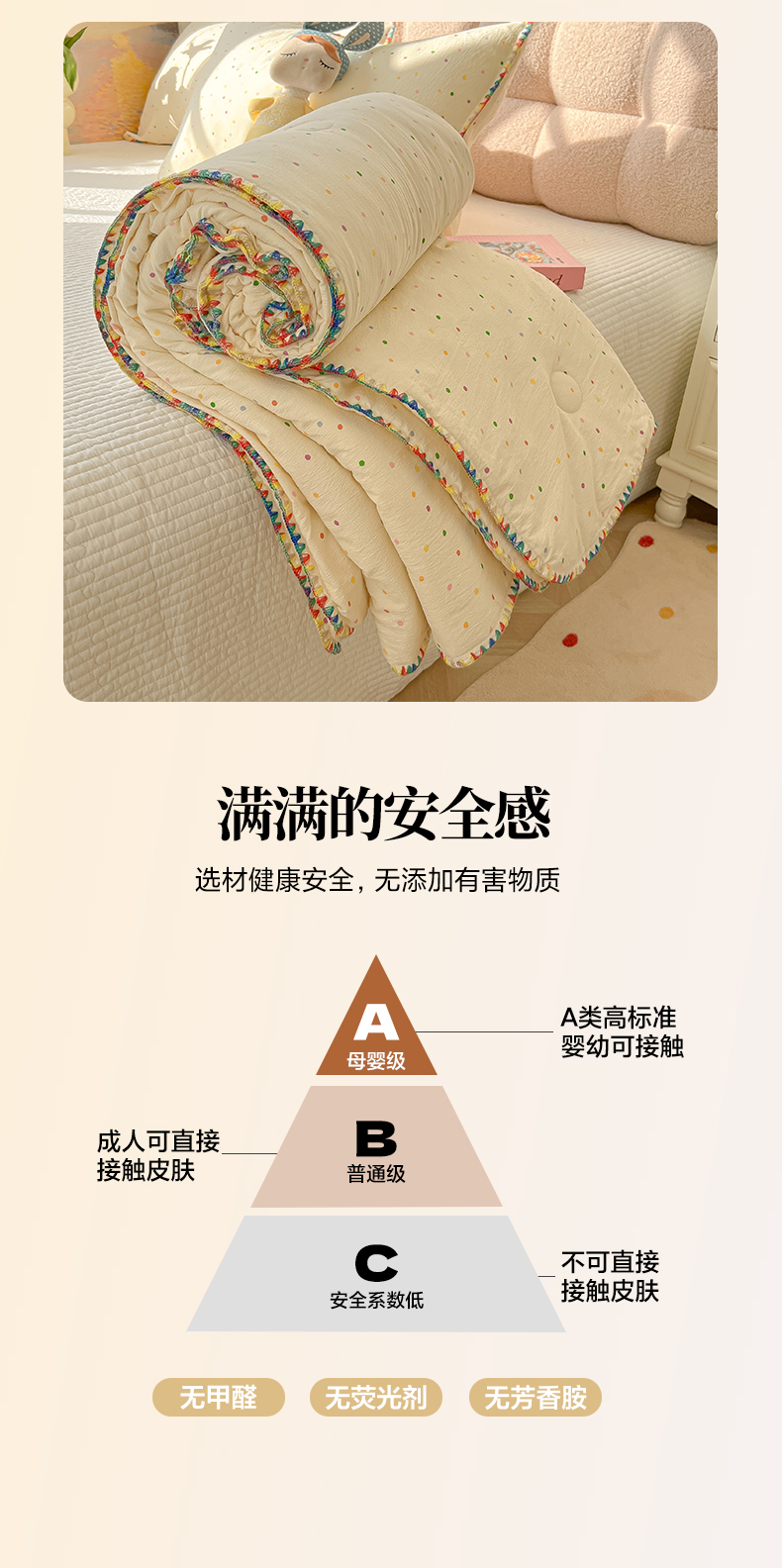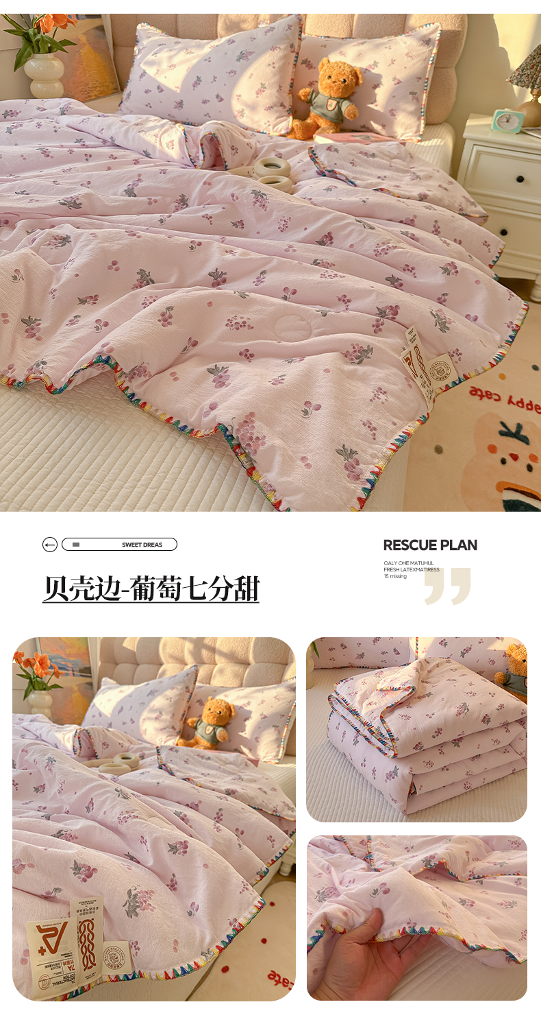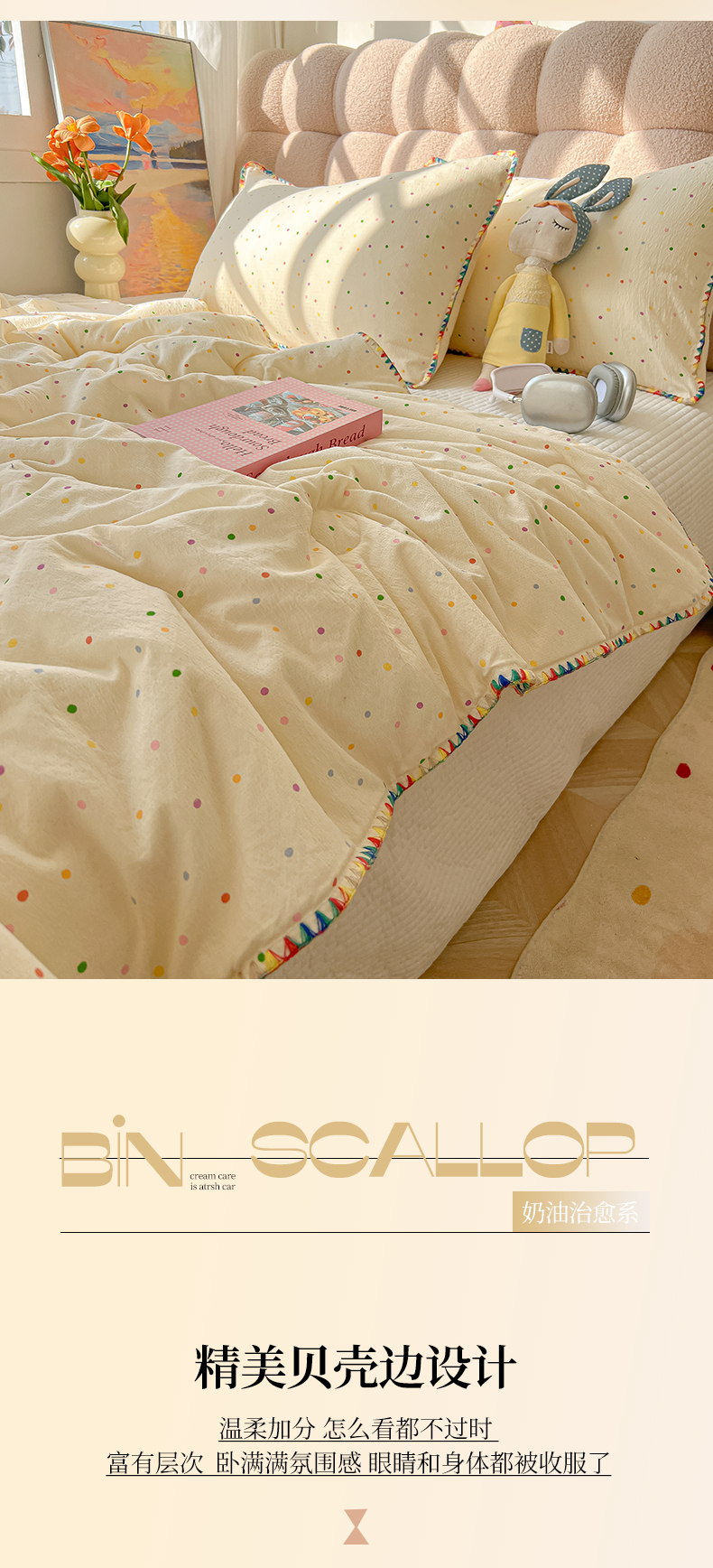 商品名称:韩巢家纺 2025夏季新款A类云感双层纱花边款夏被夏凉被空调被薄被子 贝壳边-波点世界