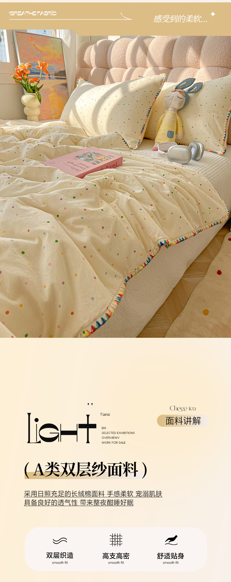 (总)韩巢家纺 2025新款双层纱床上用品四件套热销款超柔学生宿舍床单被套三件套,黑丁香紫波点,波点世界,川岛落日,红深粉波点,橘子海,兰相思,浪漫世界,奶昔甜糕-粉,七宝,芊芊花海,绒毛摇滚,少女象,生日宴会兰,童话花岛,童话女孩,兔子集合,向天歌大鹅,小美冰激凌,心愿