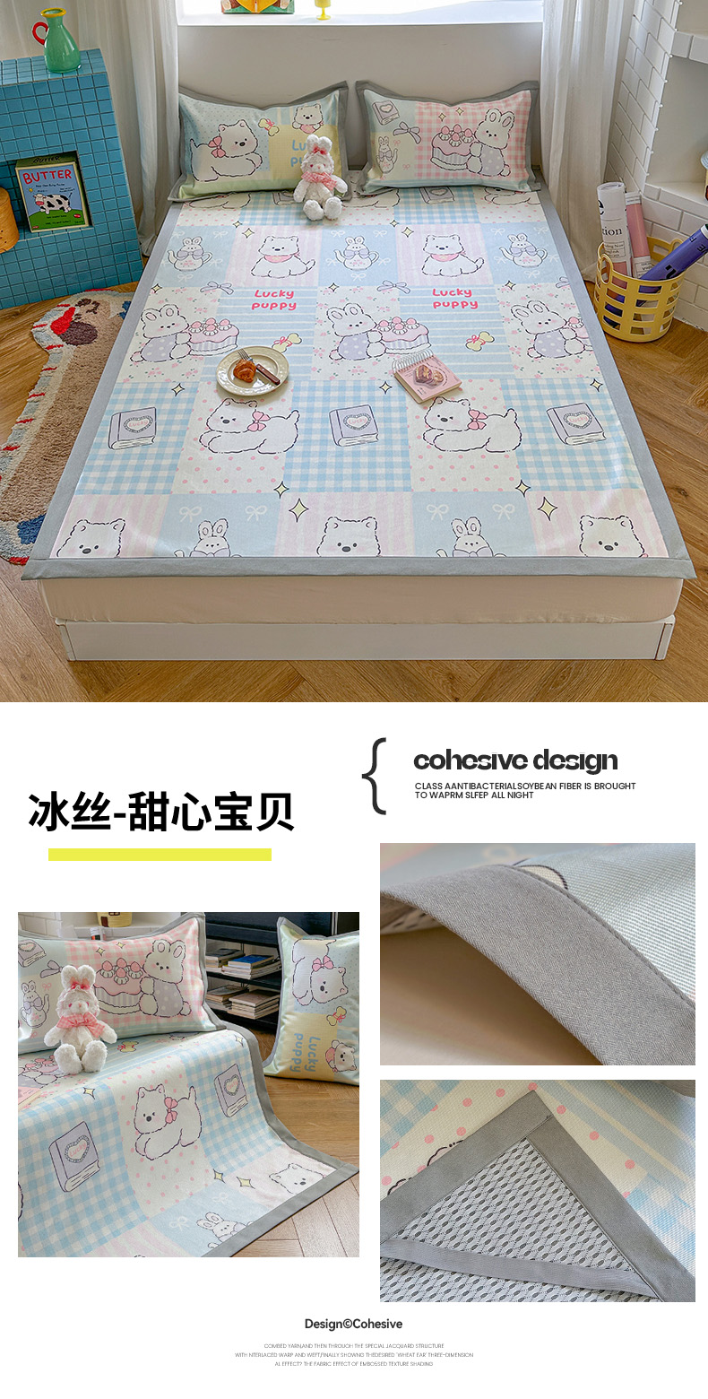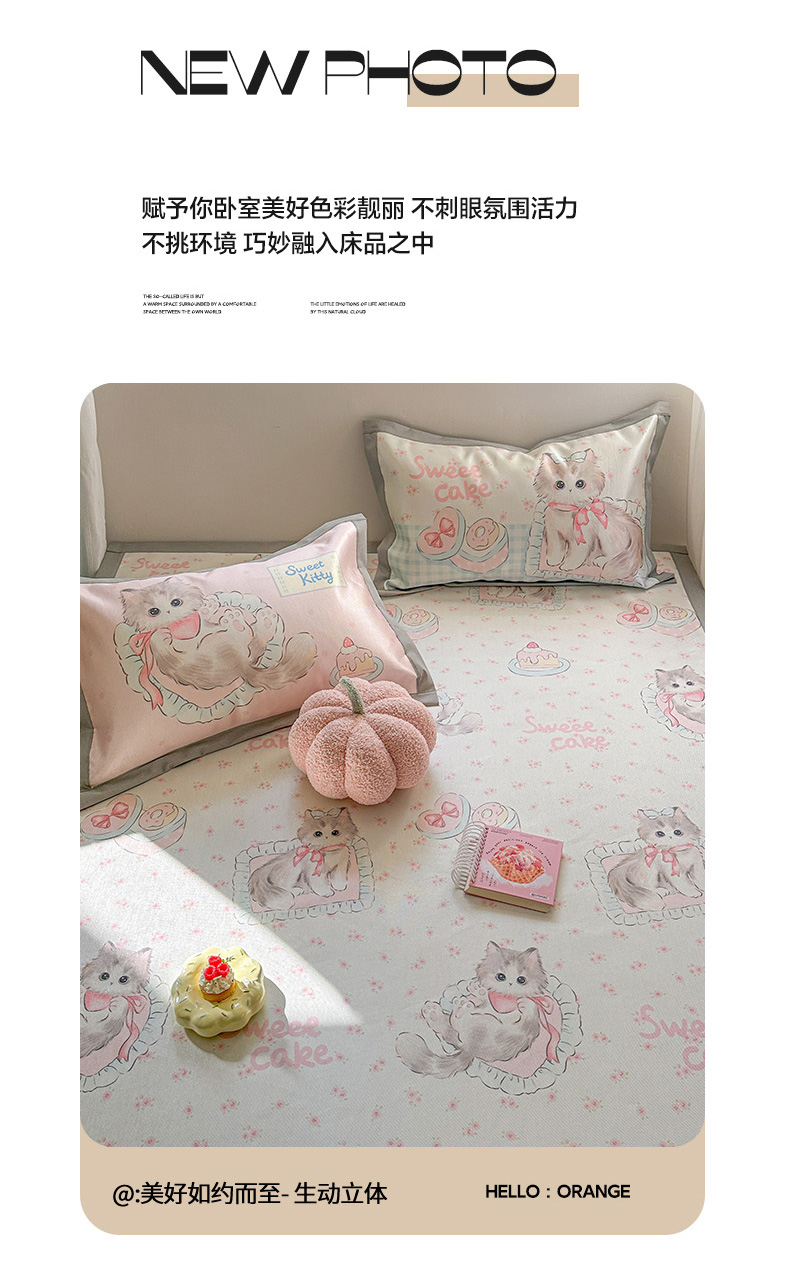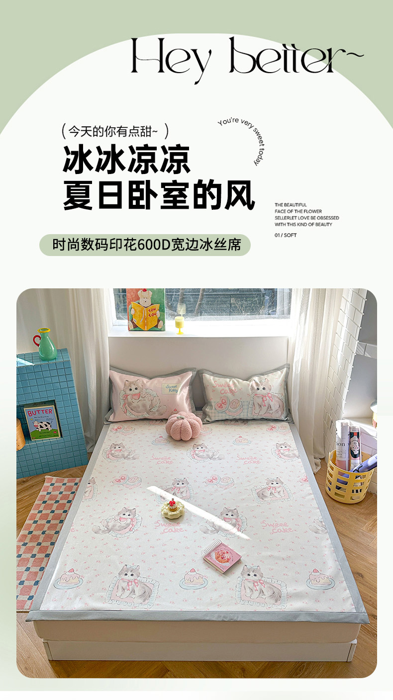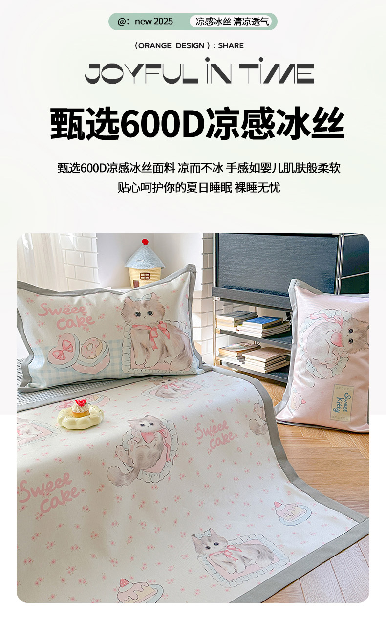 沐慕 2025新款时尚数码印花600D冰丝凉席系列 冰丝-蛋糕猫咪