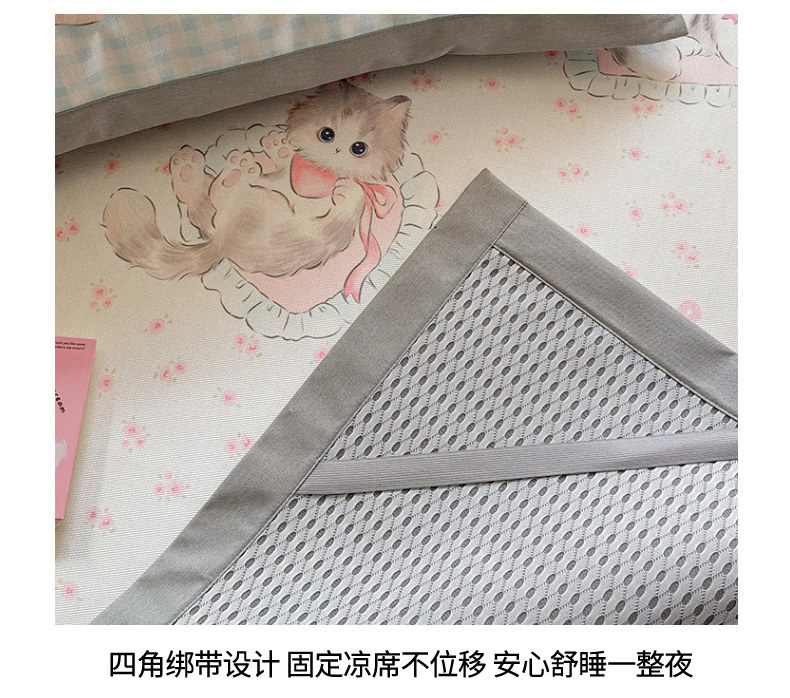 商品名称:沐慕 2025新款时尚数码印花600D冰丝凉席系列 冰丝-蛋糕猫咪
