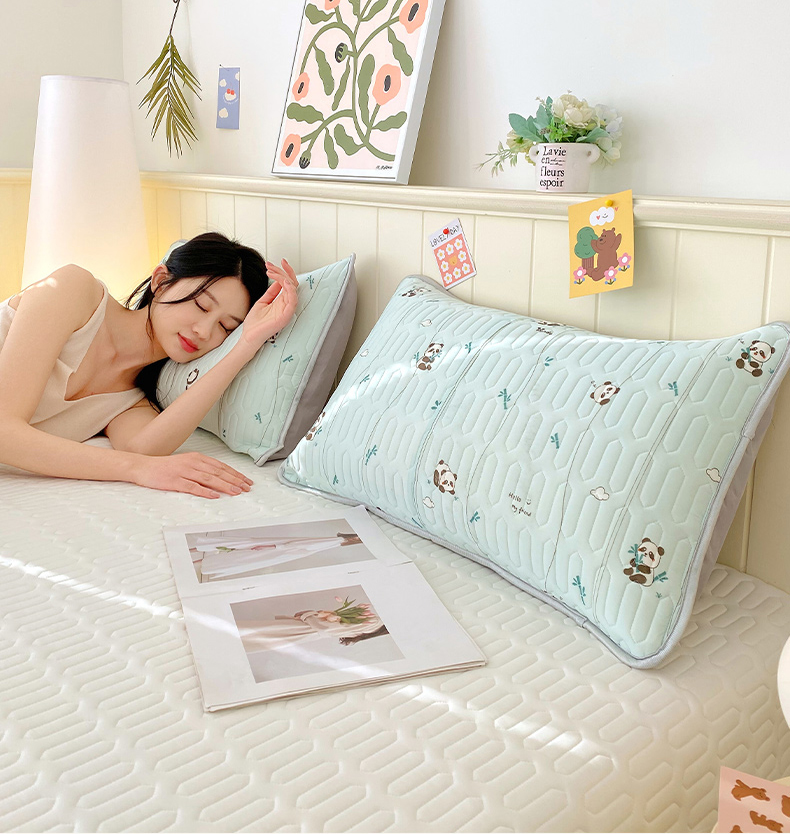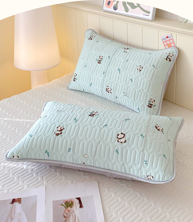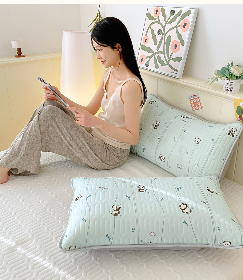 商品名称:芯宜佳 2025新款A类凉感丝乳胶单人枕套 熊猫宝宝-湖蓝