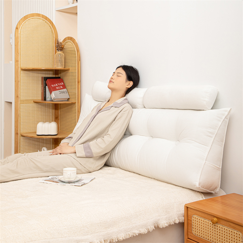 沐沐家纺 2026新款灯芯绒三角靠背带头枕 白色