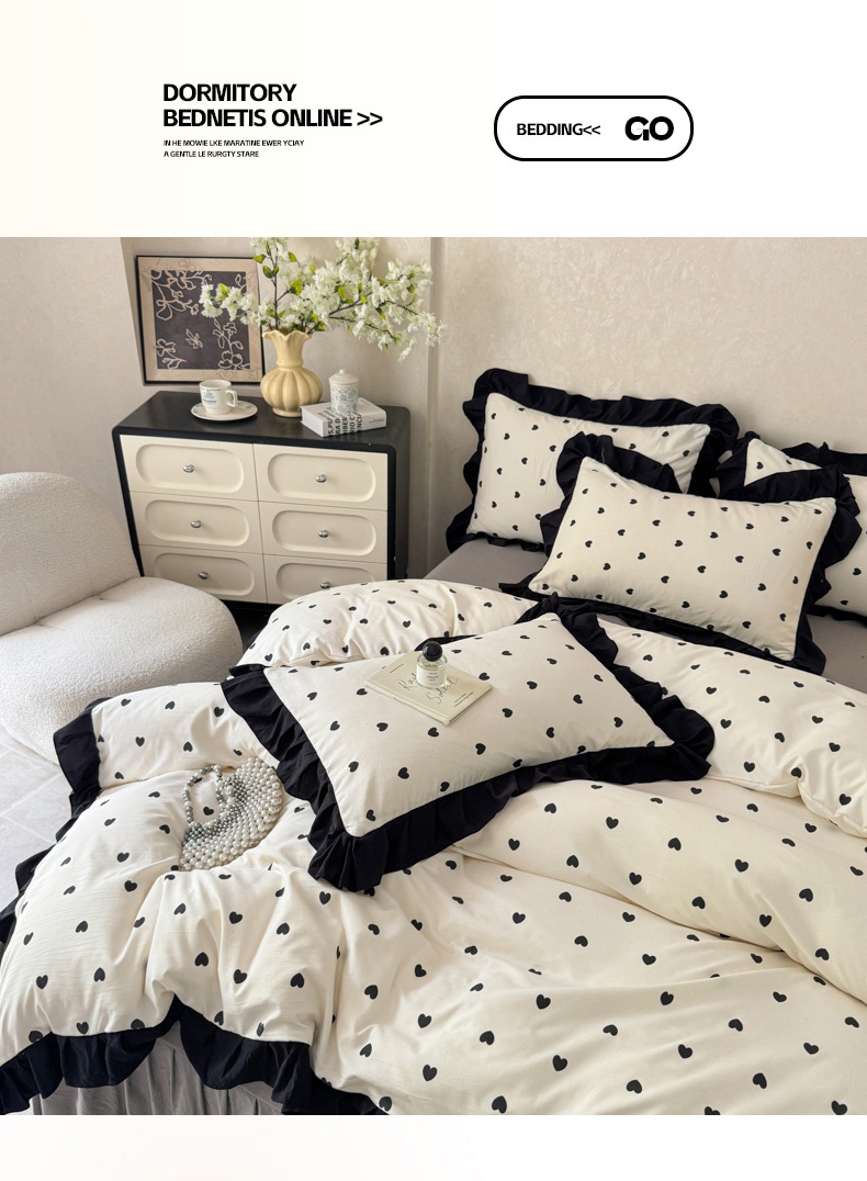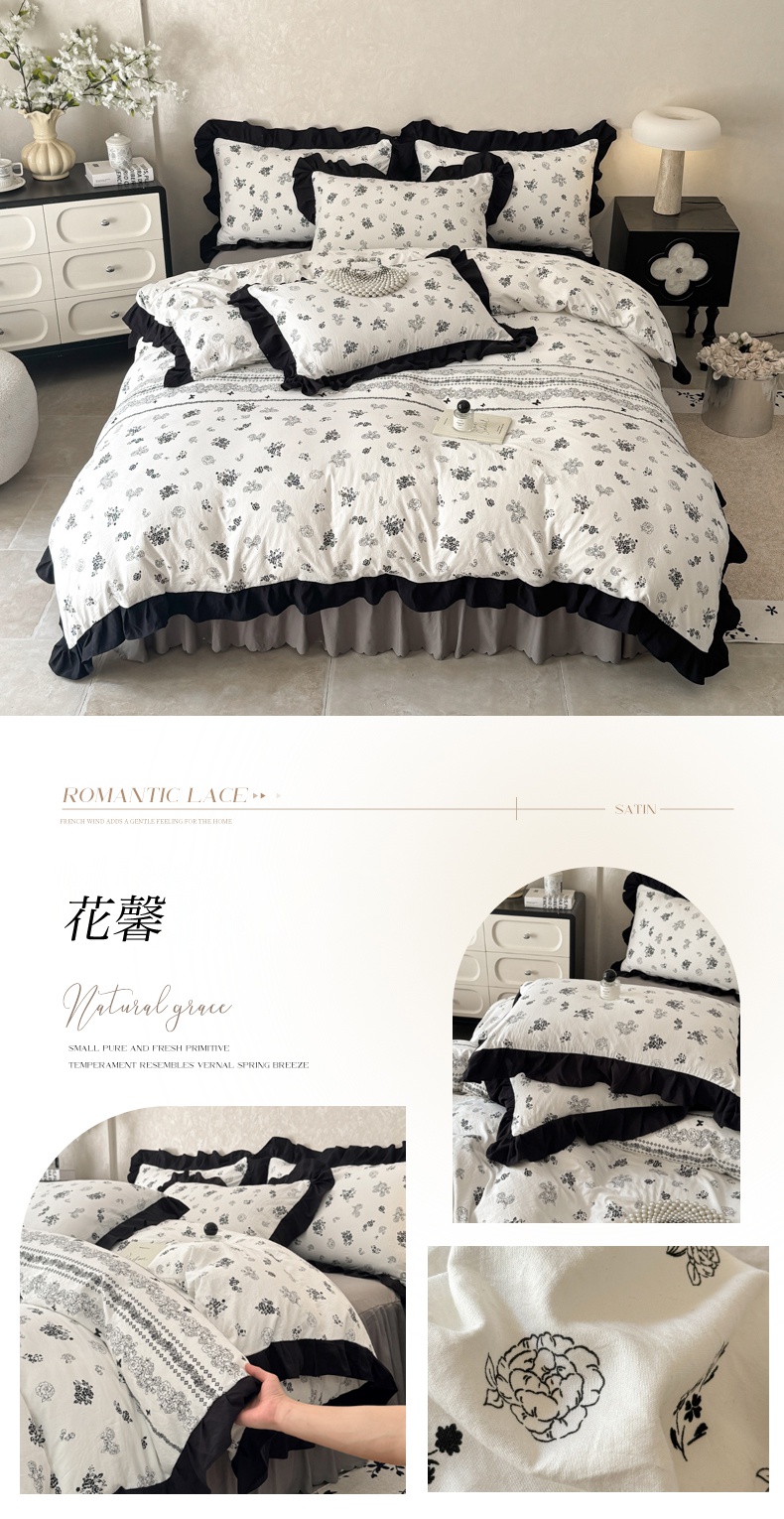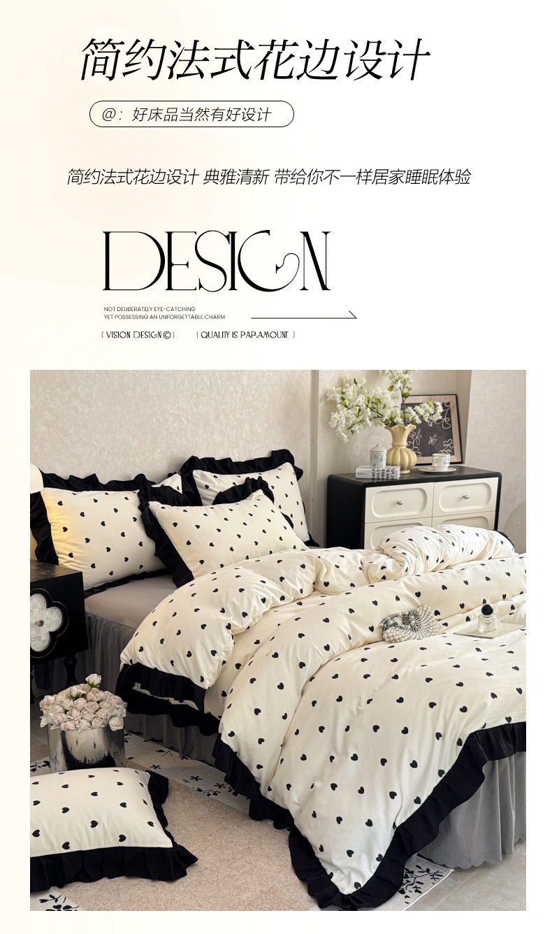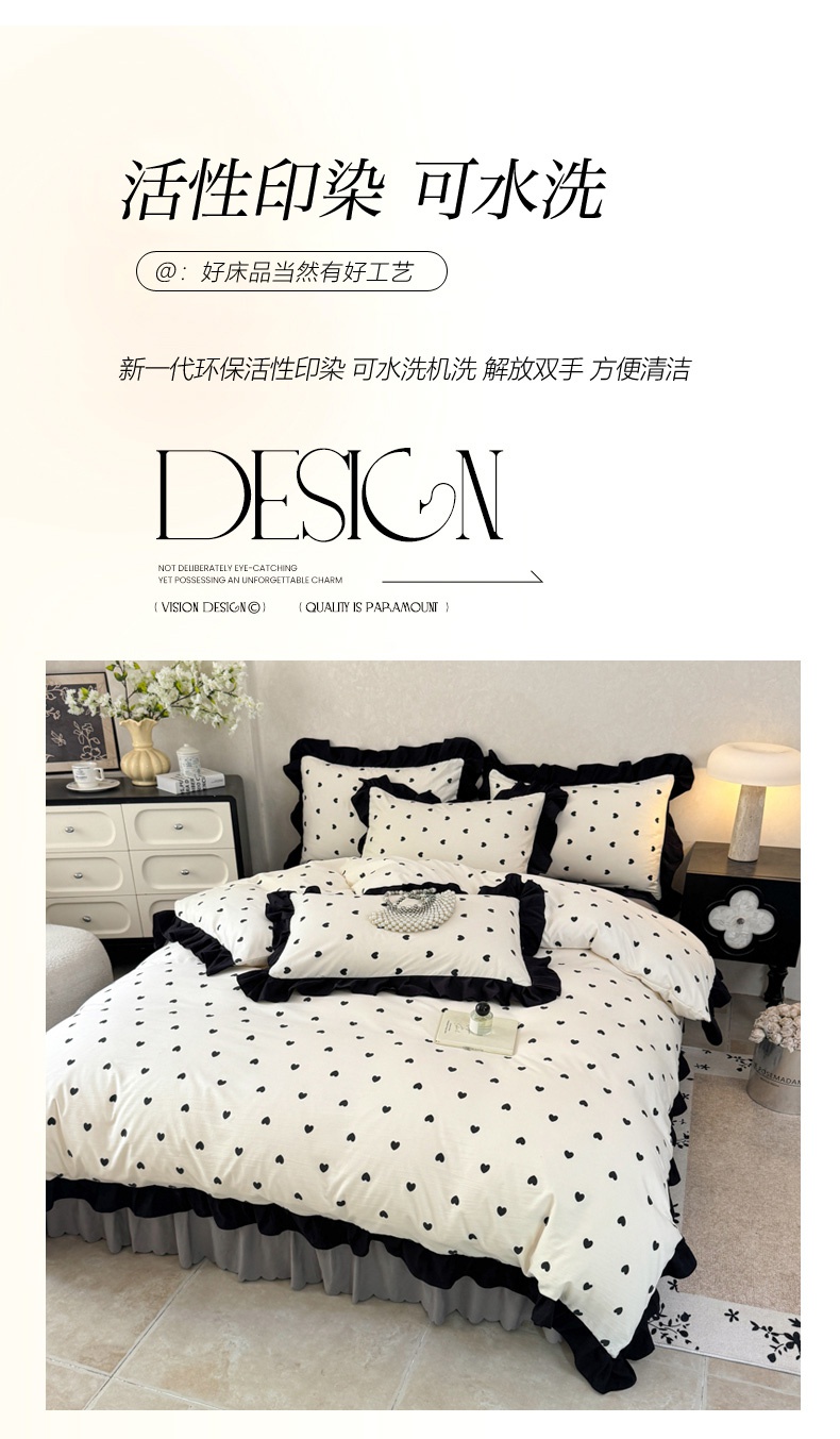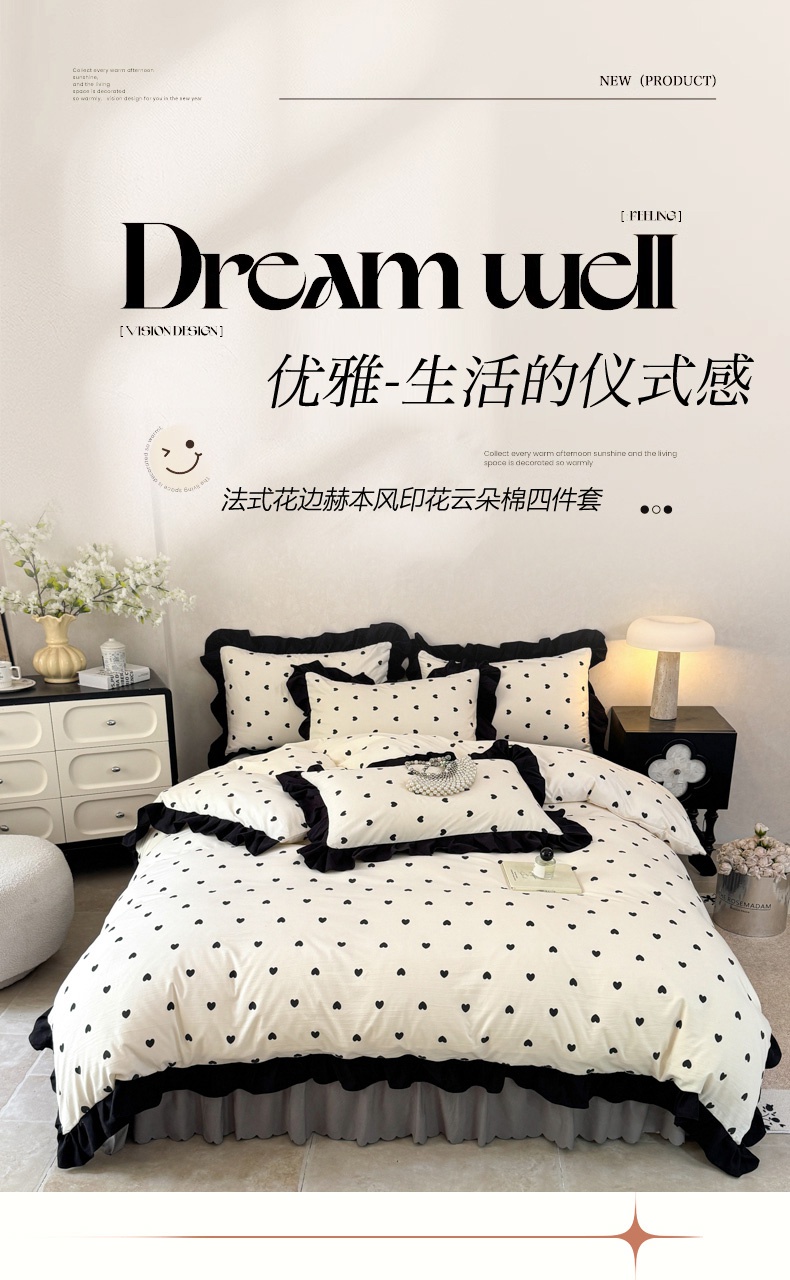 当前位置: 91家纺网 > 商品网购 > 床品套件 > 四件套 > 其它四件套 > 上尚居 2025新款法式花边赫本风印花云朵棉四件套 心心相印