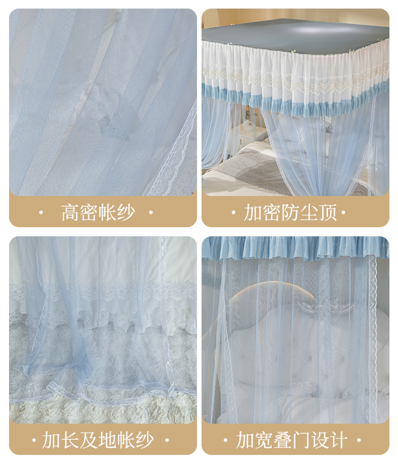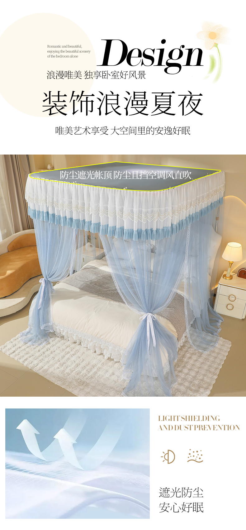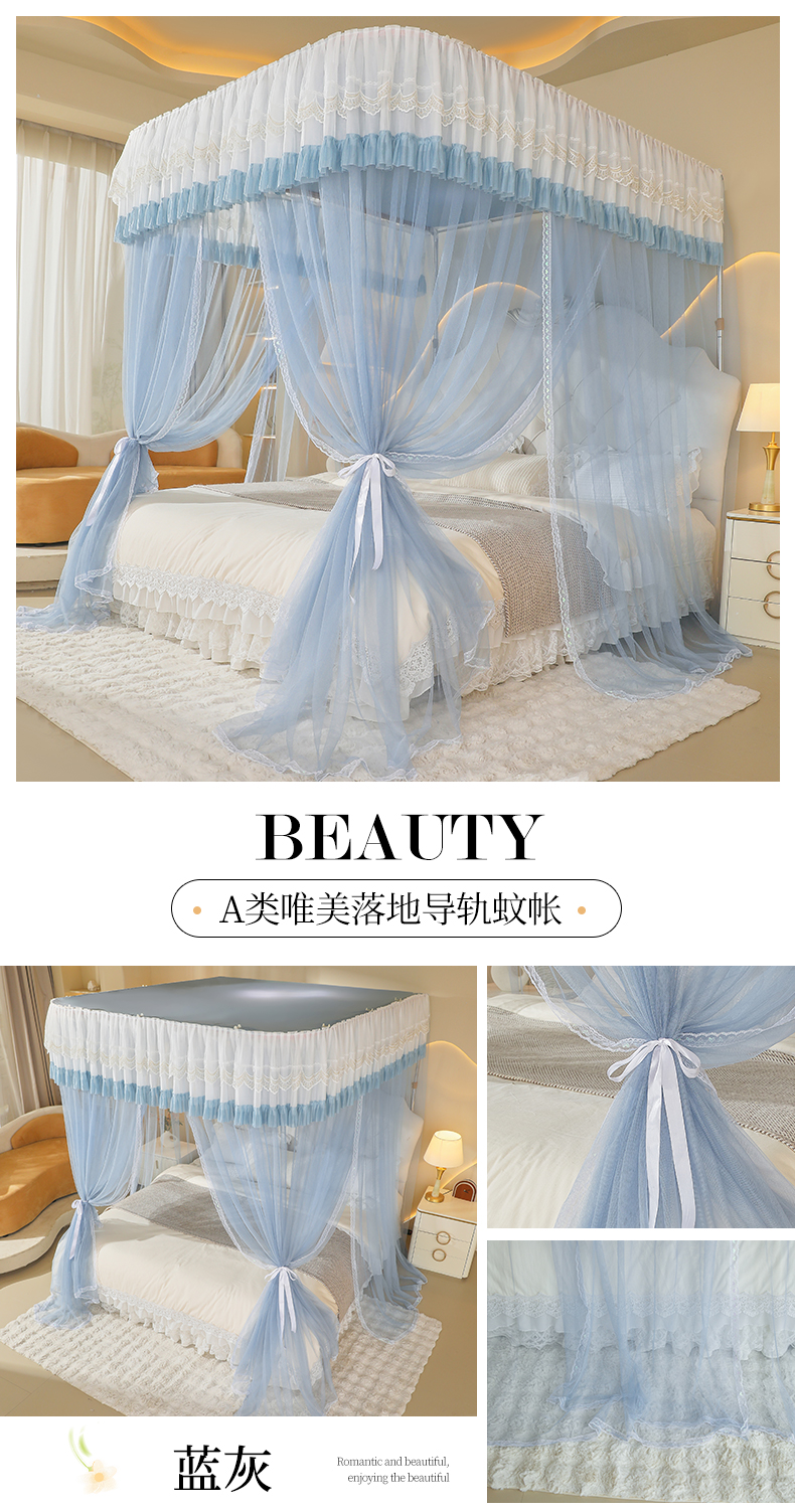 (总)迪凡保罗蚊帐 2025新款2410三开门落地宫廷蚊帐,海岛蓝,皮红色,浅蓝灰,太湖绿,天空蓝,樱花粉