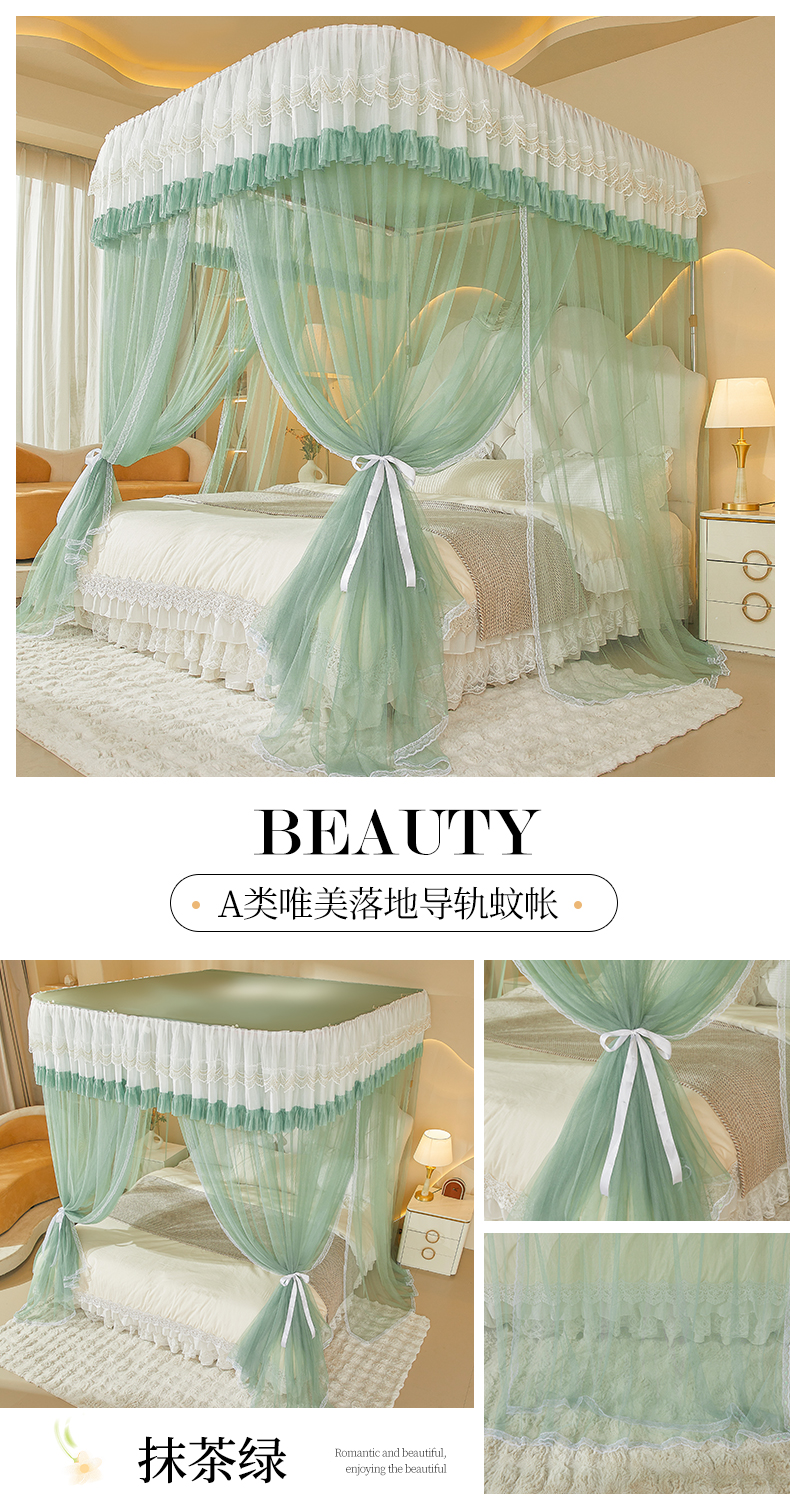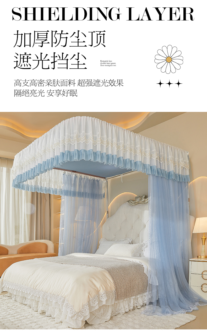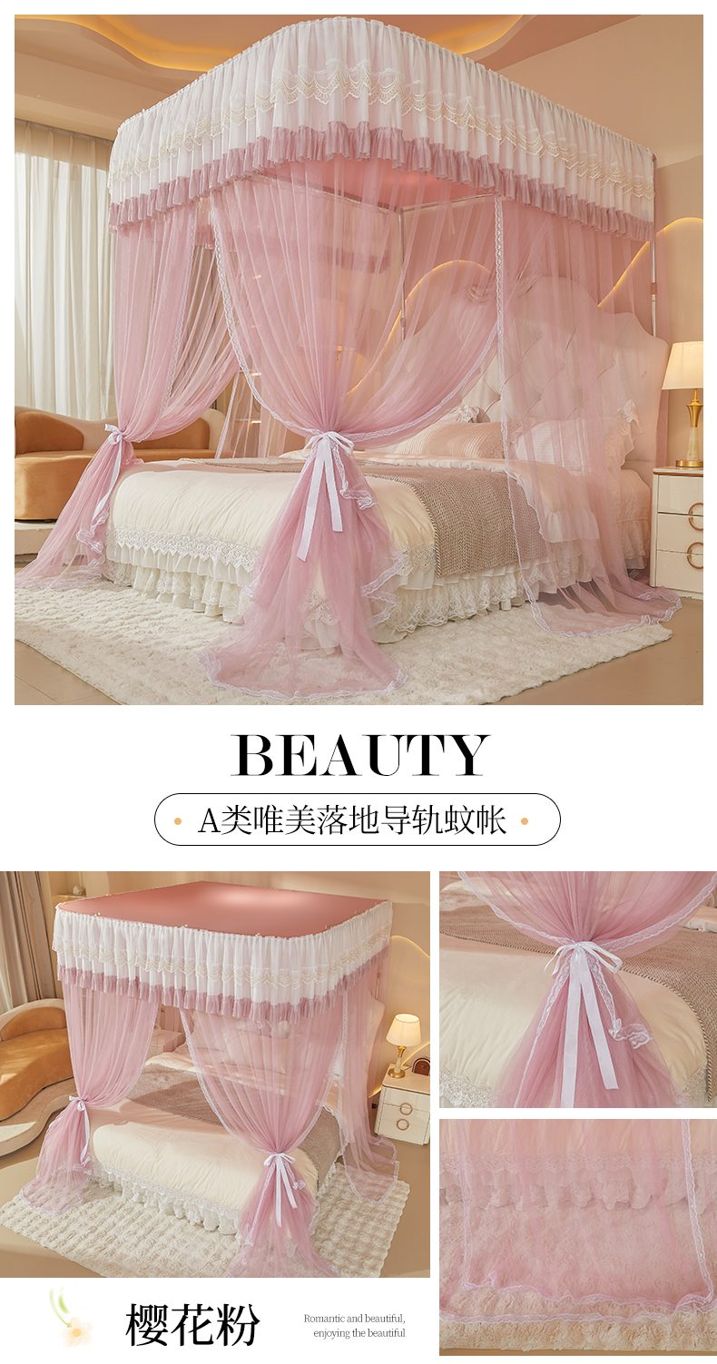 (总)迪凡保罗蚊帐 2025新款2410三开门落地宫廷蚊帐,海岛蓝,皮红色,浅蓝灰,太湖绿,天空蓝,樱花粉