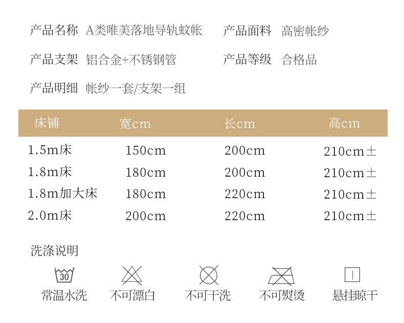 商品名称:(总)迪凡保罗蚊帐 2025新款2513款双轨铝合金落地导轨蚊帐