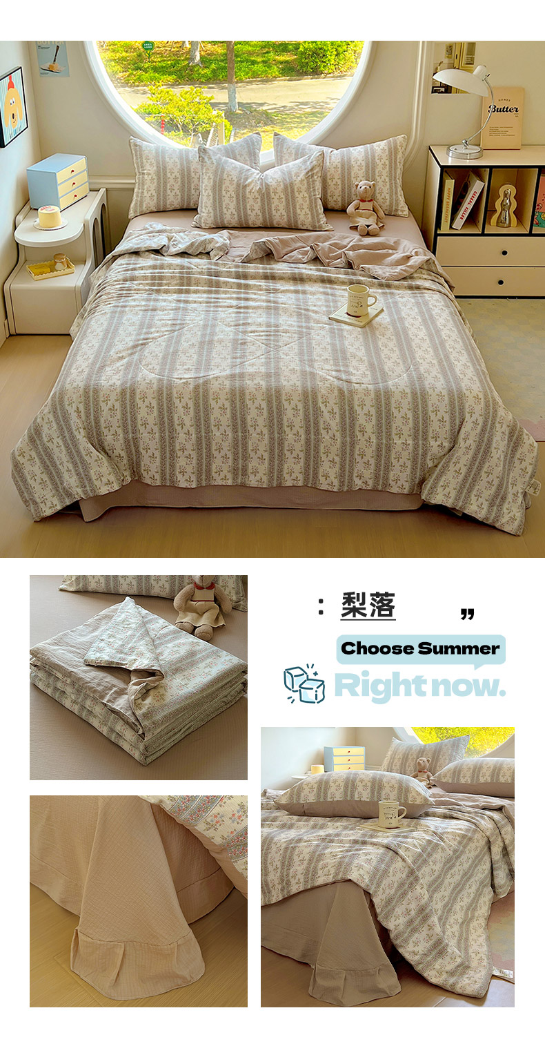 金梦拉家纺 2025新款A类提花纱布双层纱夏被四件套 夏被-梨落