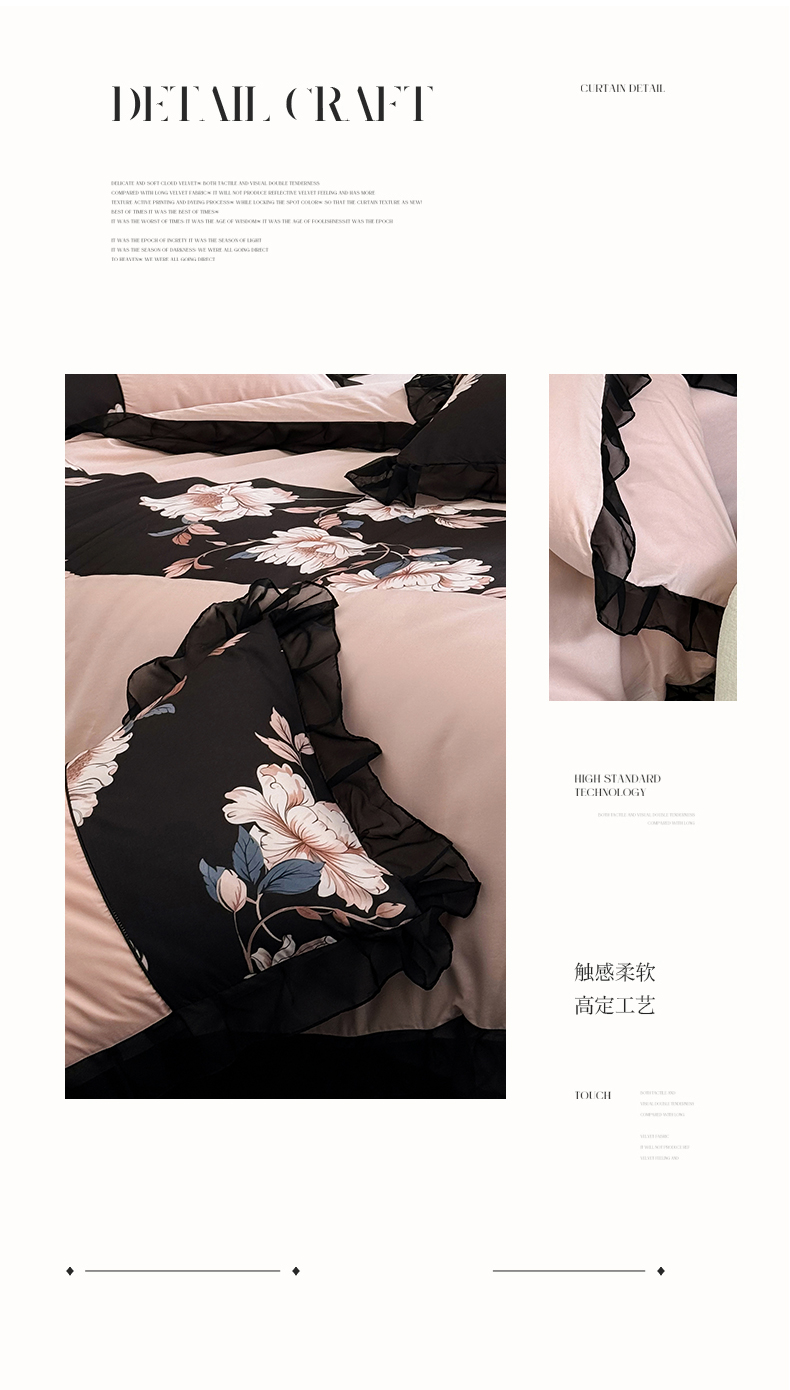 (总)宅家居 2025新款热卖热款轻法式复古赫本风绒高克重浮雕花牛奶绒四件套烂花韩版黑色花边三件套,丛林迷影,蝶之花语,花恋密语,叶语悠然,蝶舞恋曲,花岸澜庭,壹枝玫瑰,夜半花香,优雅花卉