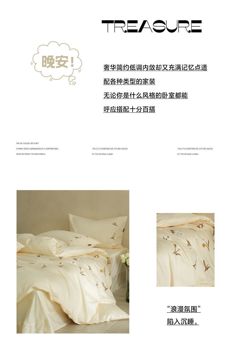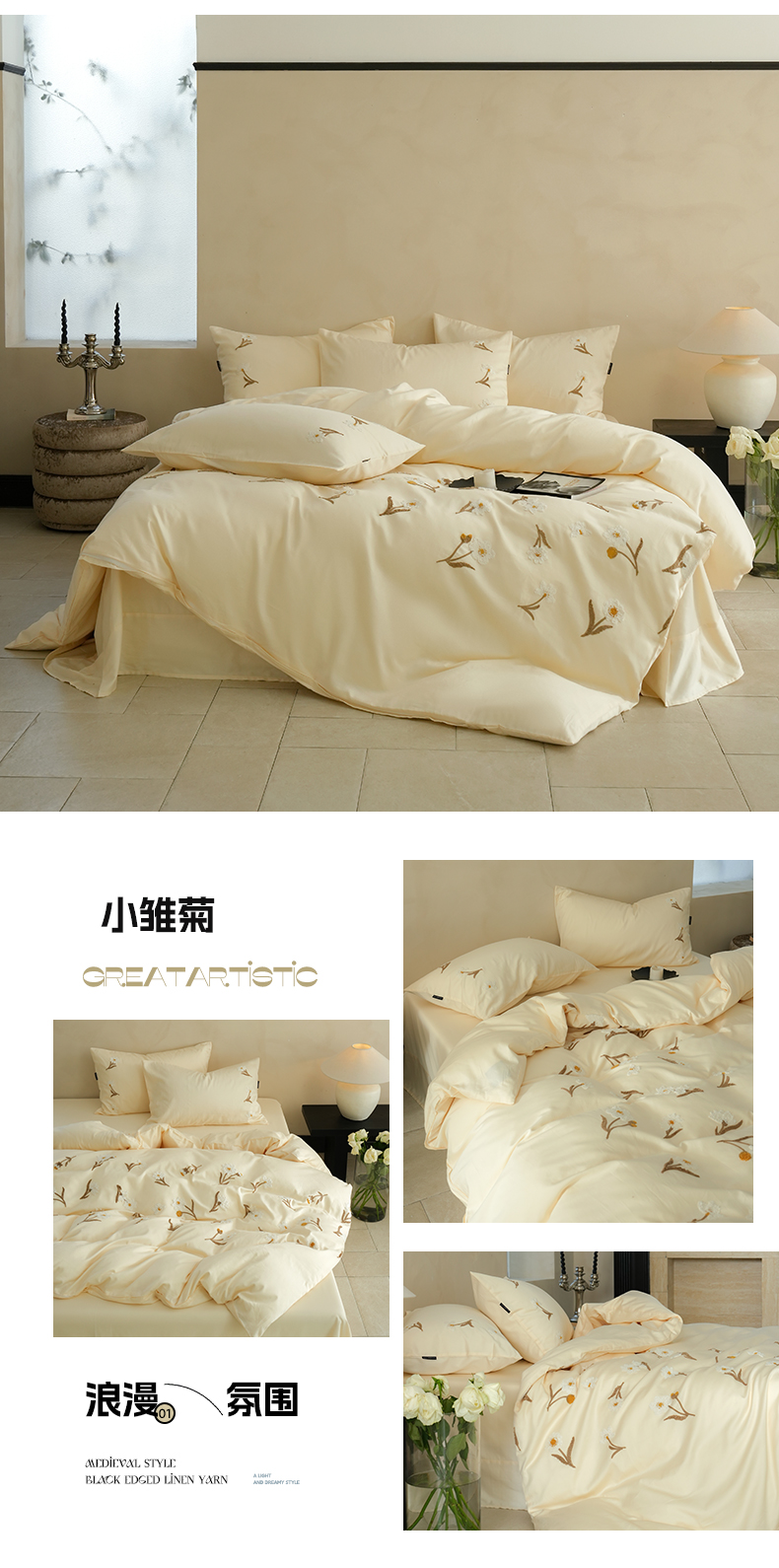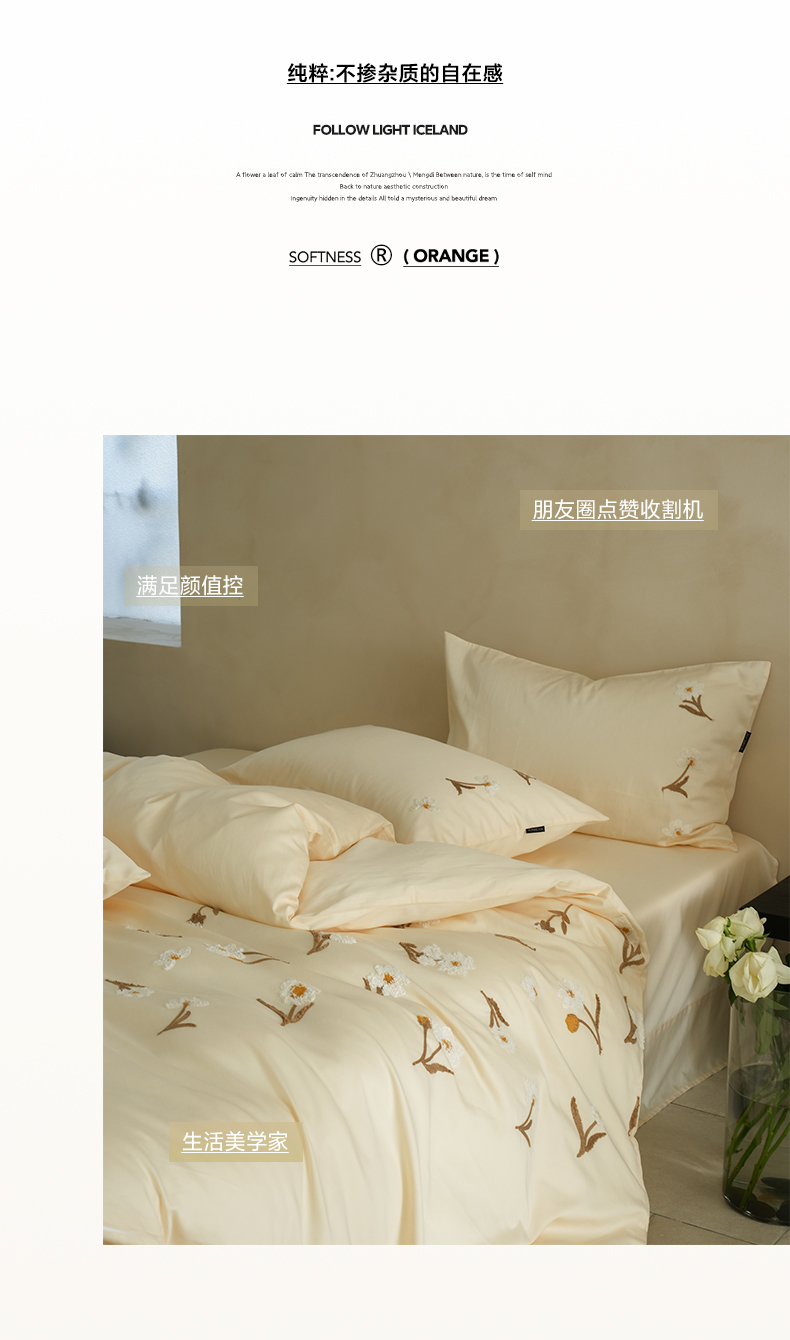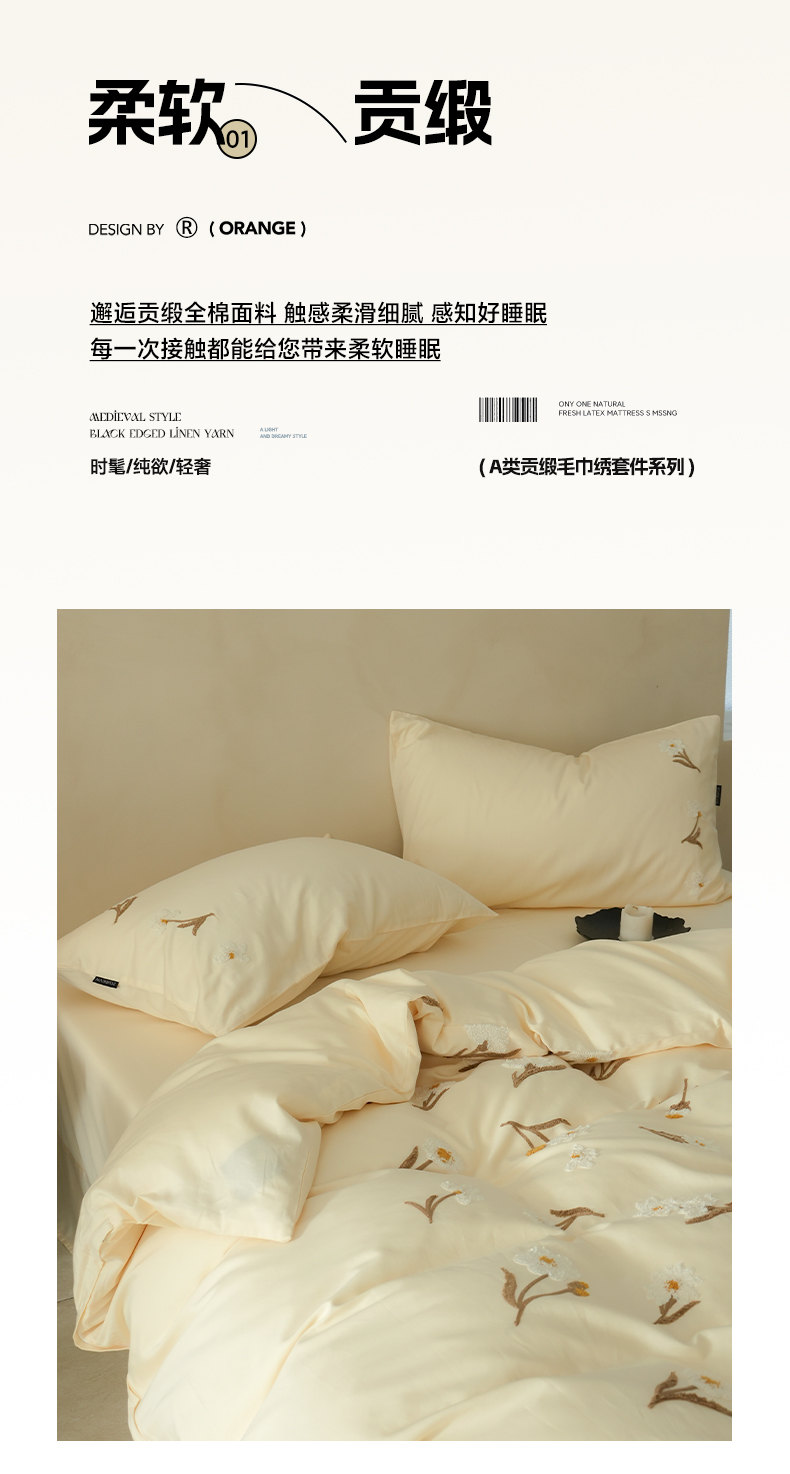 商品名称:秀色家纺 2025新款小清新60s长绒棉四件套纯棉全棉毛巾绣被套床单轻奢床品-小红书实拍风 小雏菊