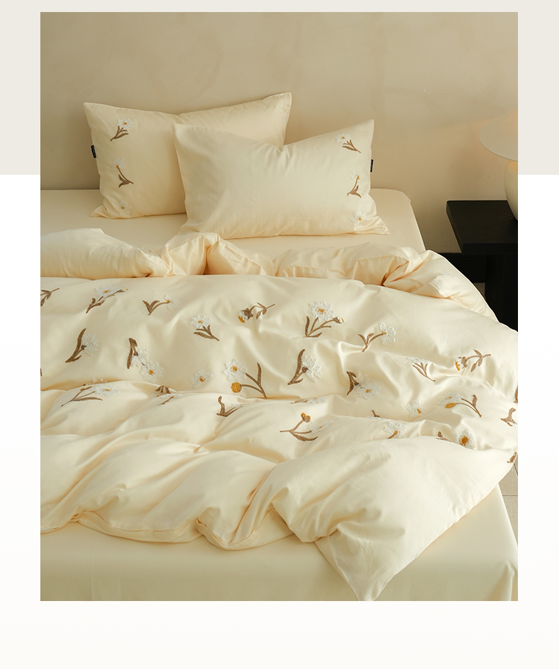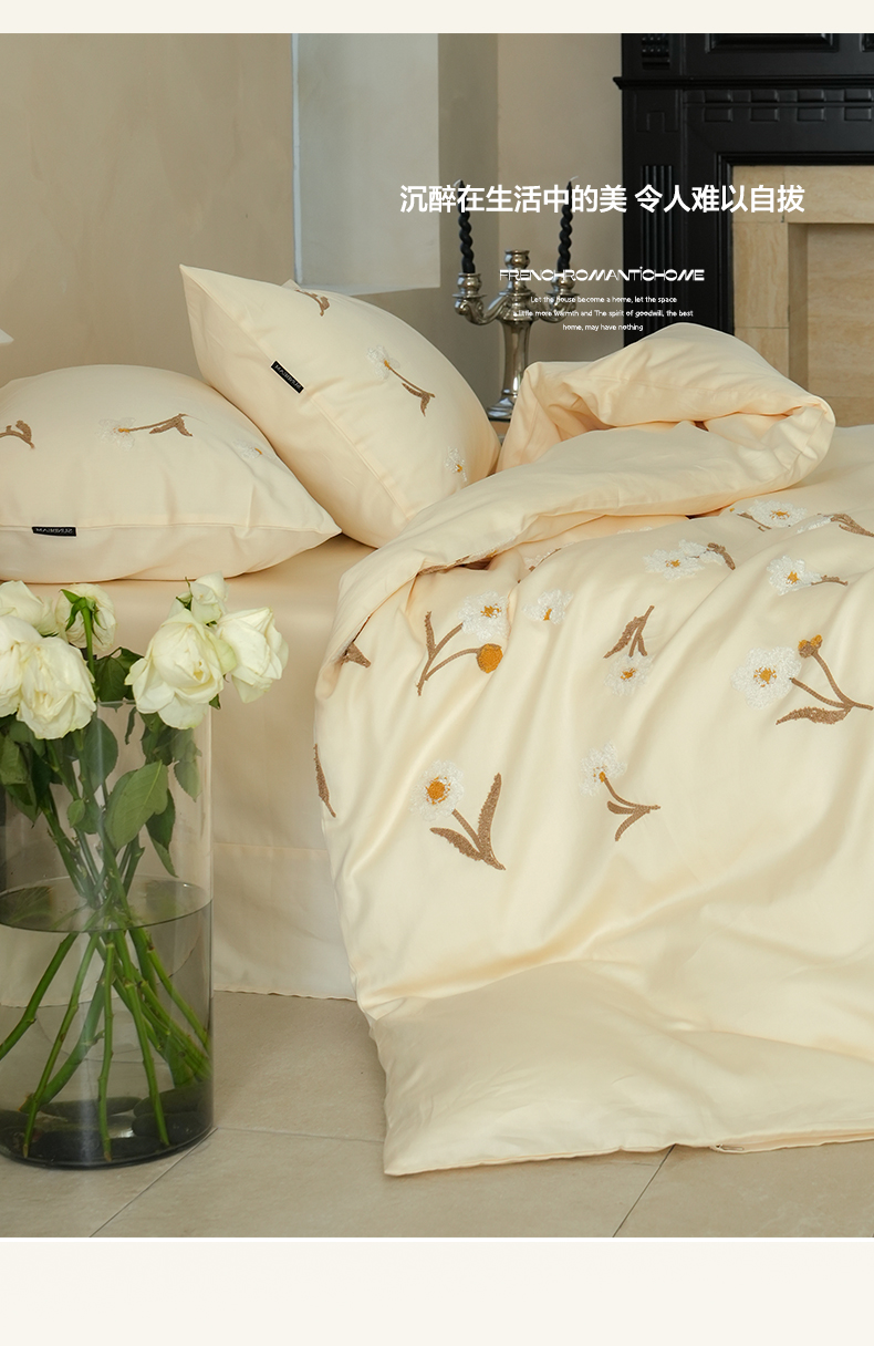 秀色家纺 2025新款小清新60s长绒棉四件套纯棉全棉毛巾绣被套床单轻奢床品-小红书实拍风 小雏菊