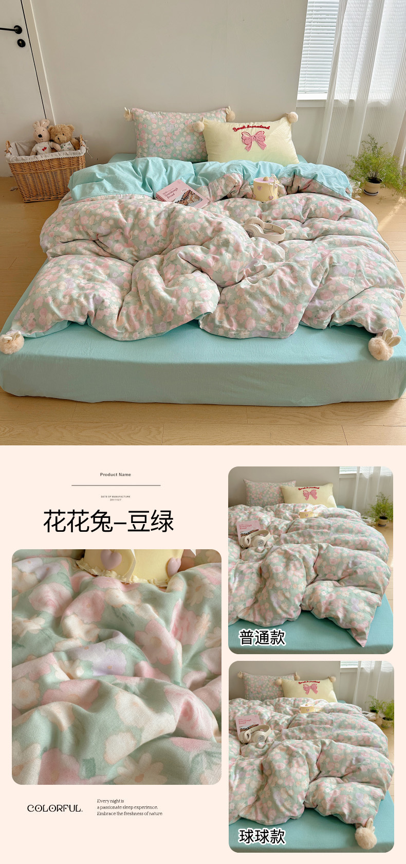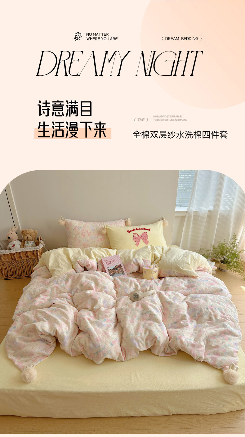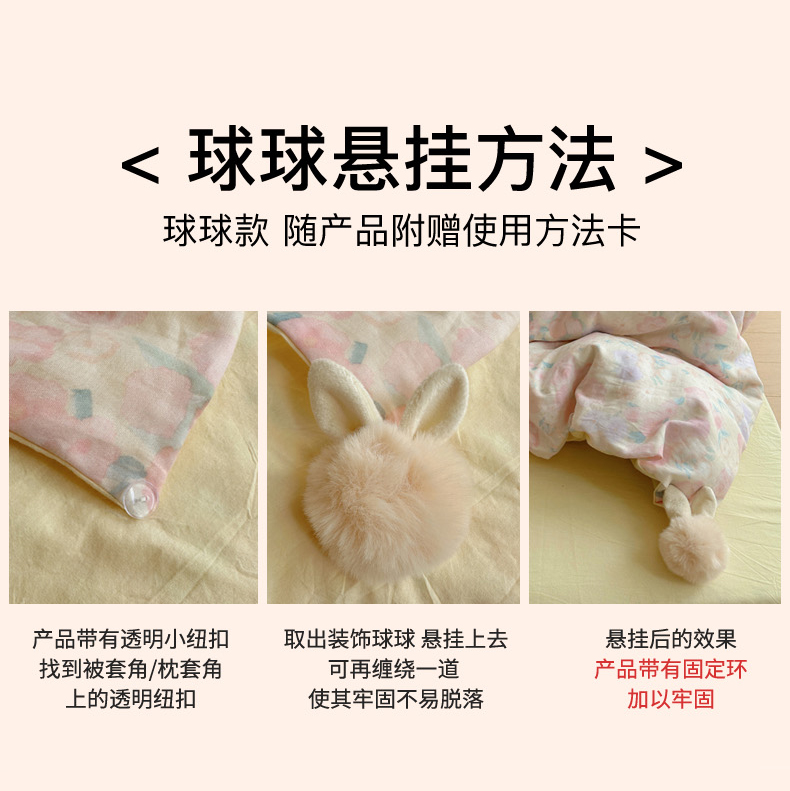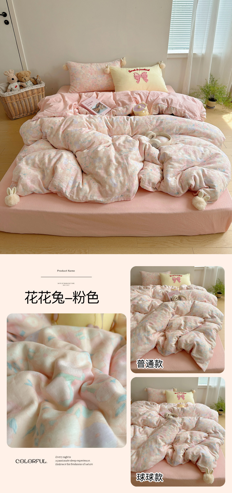 当前位置: 91家纺网 > 商品网购 > 床品套件 > 四件套 > 全棉普通四件套 > 丽涵家纺 2025新款全棉纯棉双层纱色织水洗棉毛巾绣四件套 花花兔-奶黄