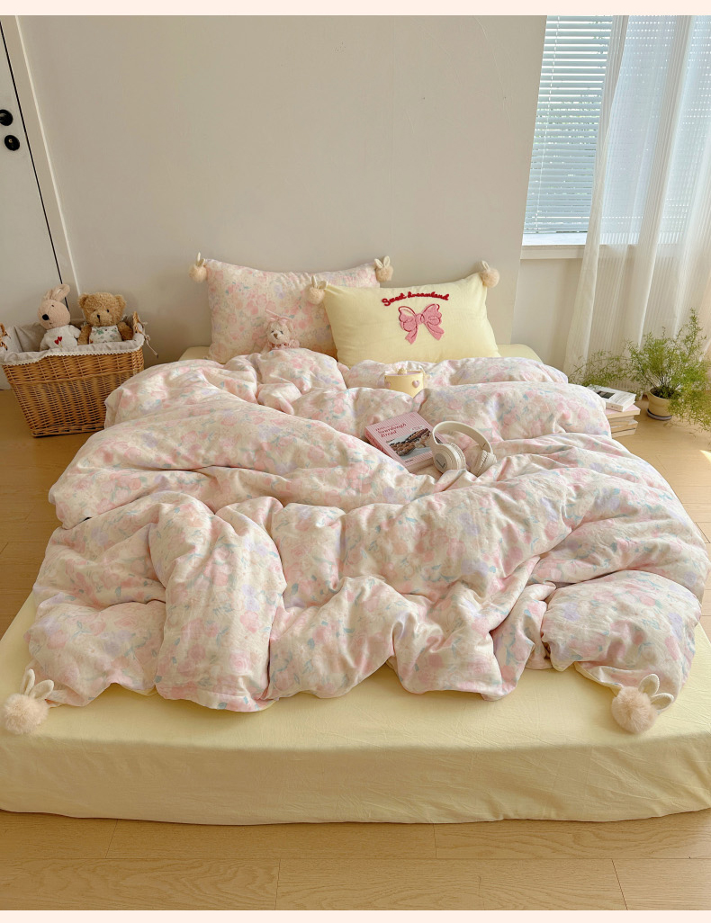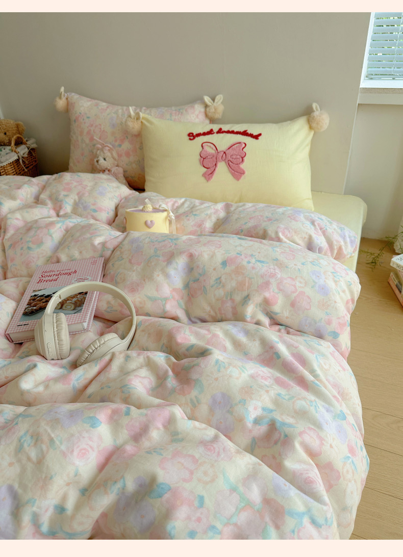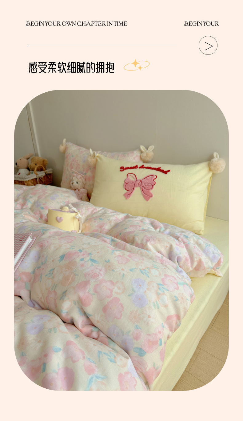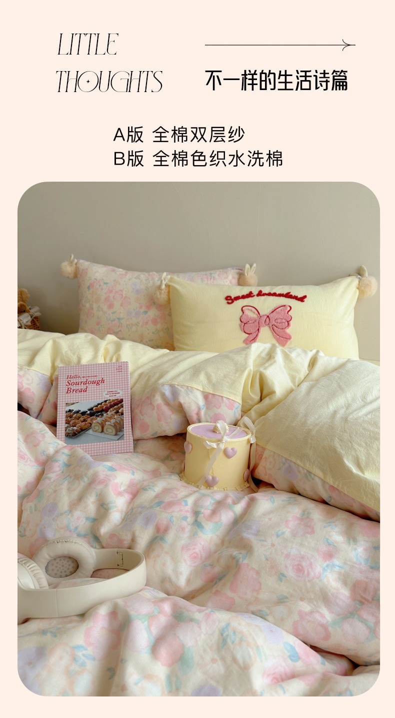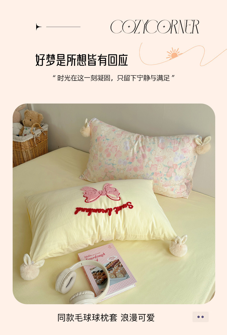 当前位置: 91家纺网 > 商品网购 > 床品套件 > 四件套 > 全棉普通四件套 > 丽涵家纺 2025新款全棉纯棉双层纱色织水洗棉毛巾绣四件套 花花兔-奶黄