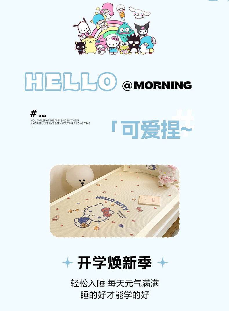当前位置: 91家纺网 > 商品网购 > 床上用品 > 凉席 > 藤席 > 蓝邻家纺 2025新款学生专用印花冰藤席 hellokitty