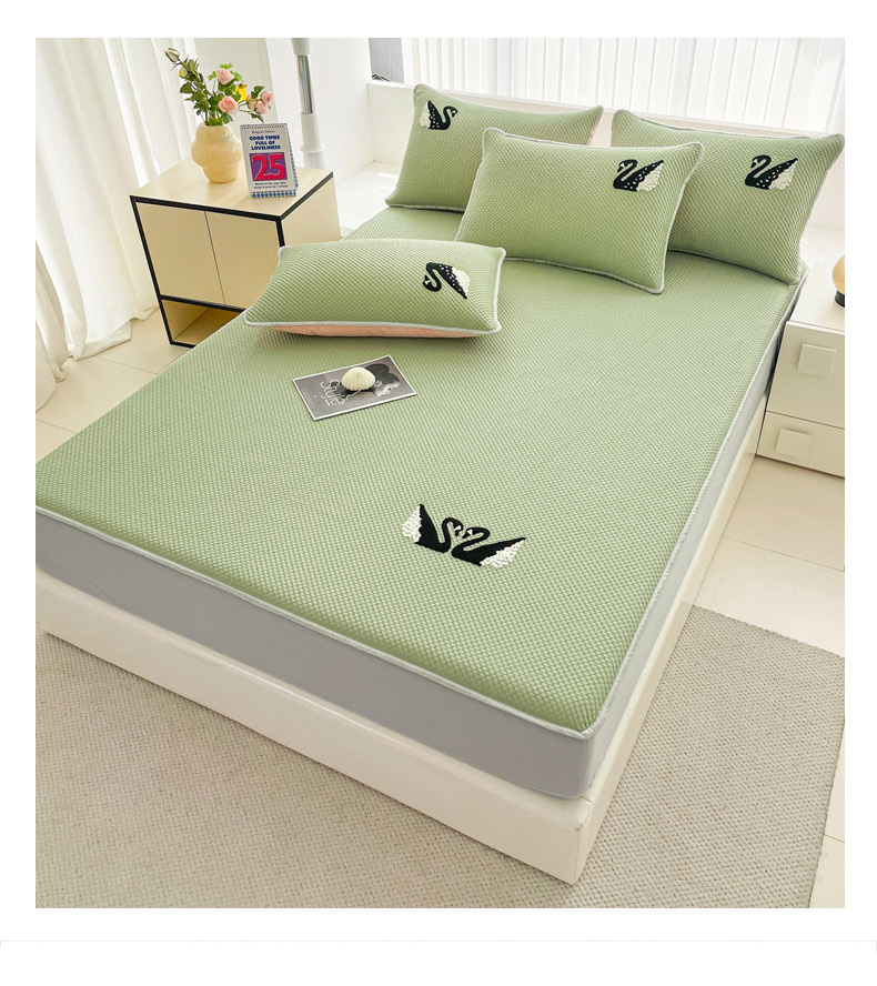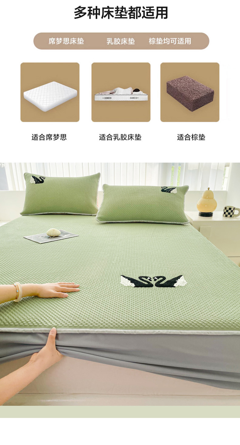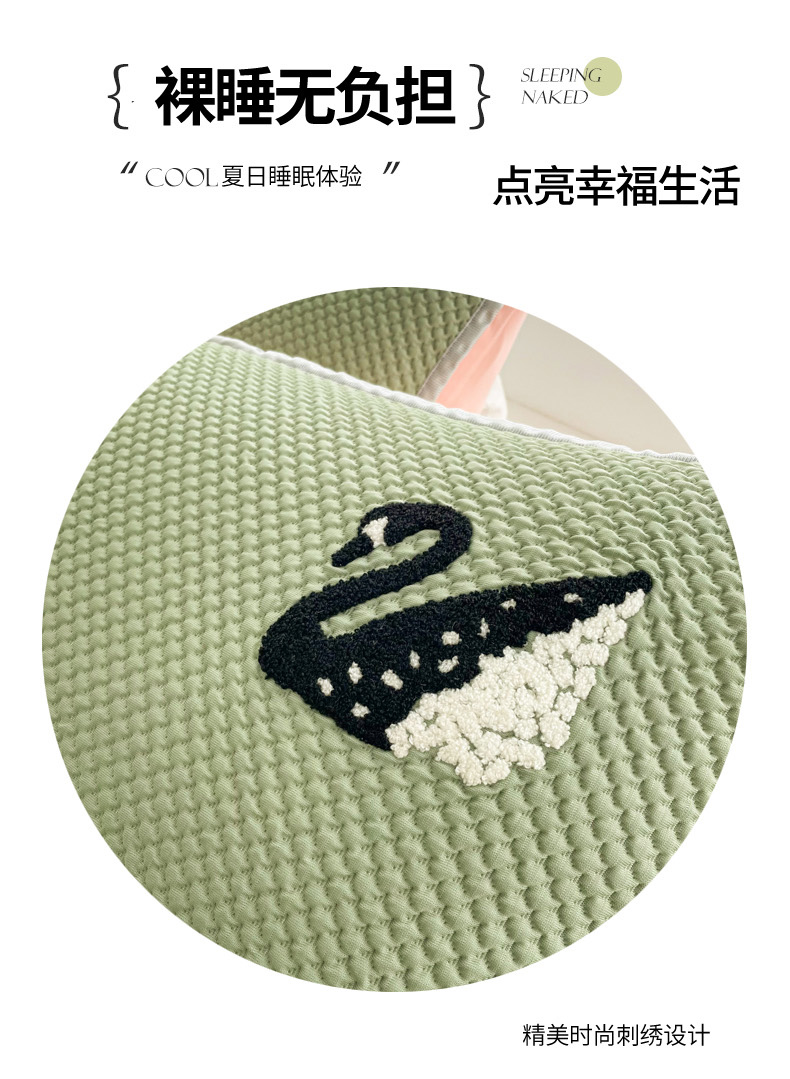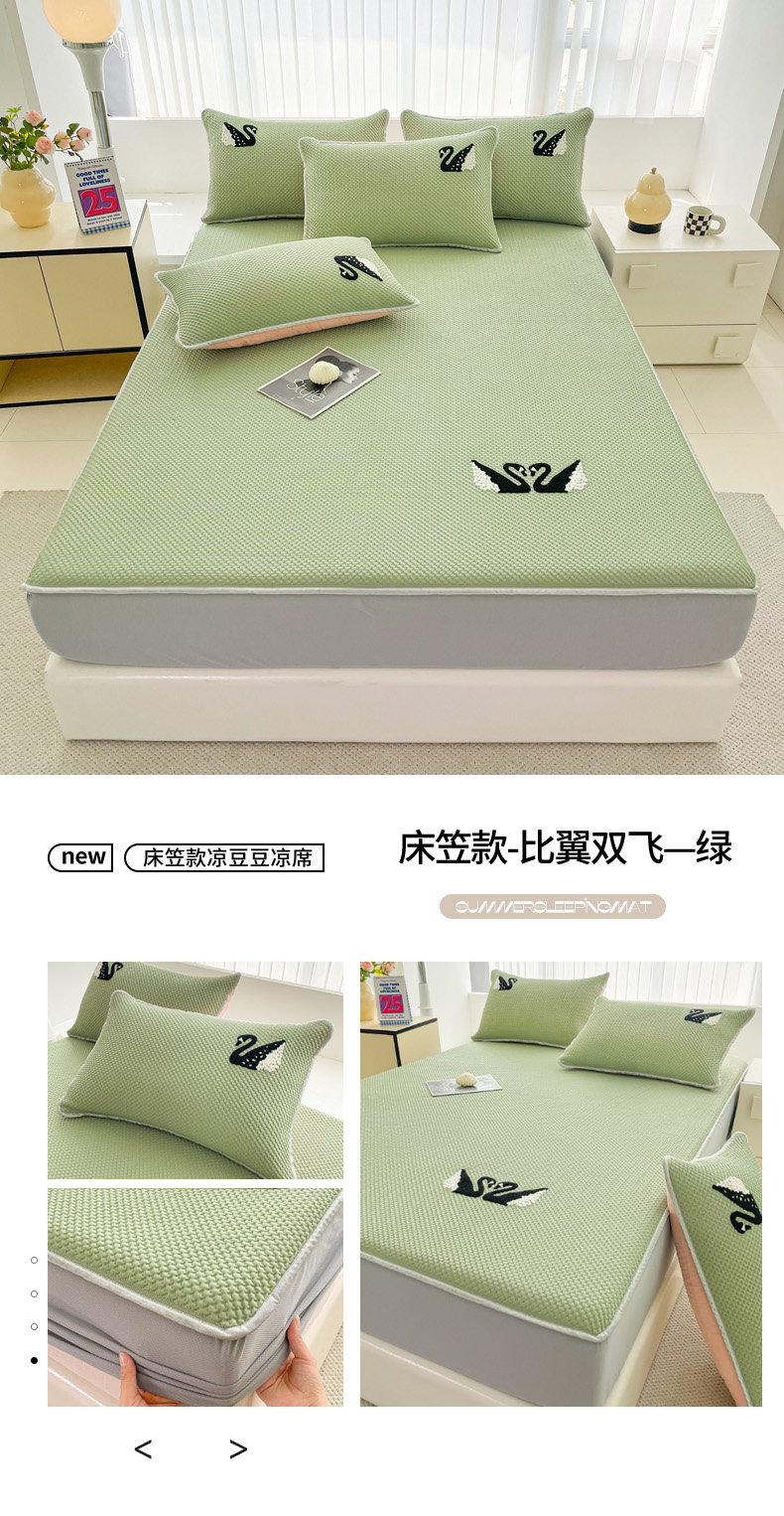 商品名称:恋佳居2025新款A类乙伦PE凉豆豆毛巾绣床笠冰丝席(床笠款) 比翼双飞—绿