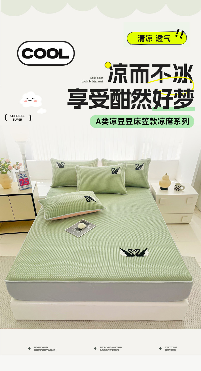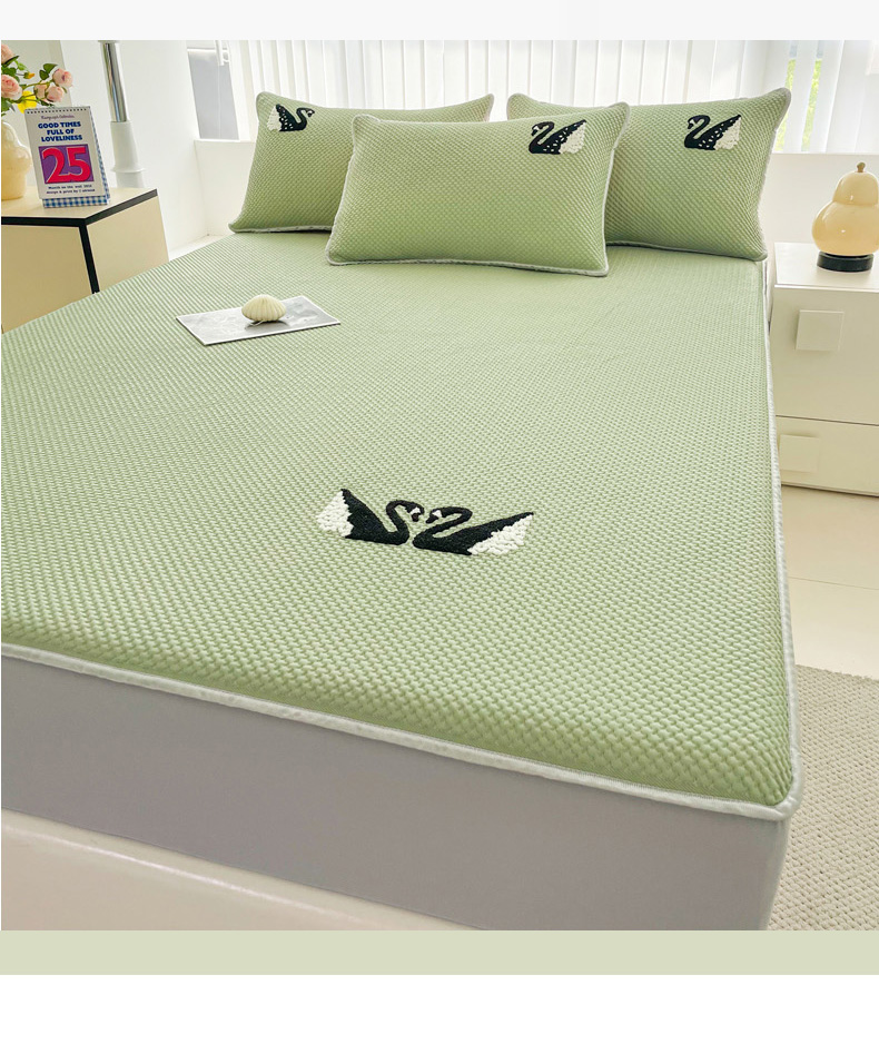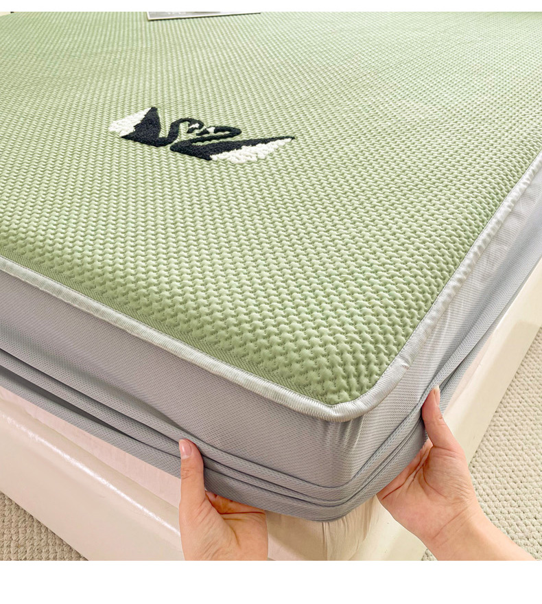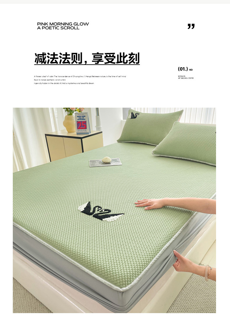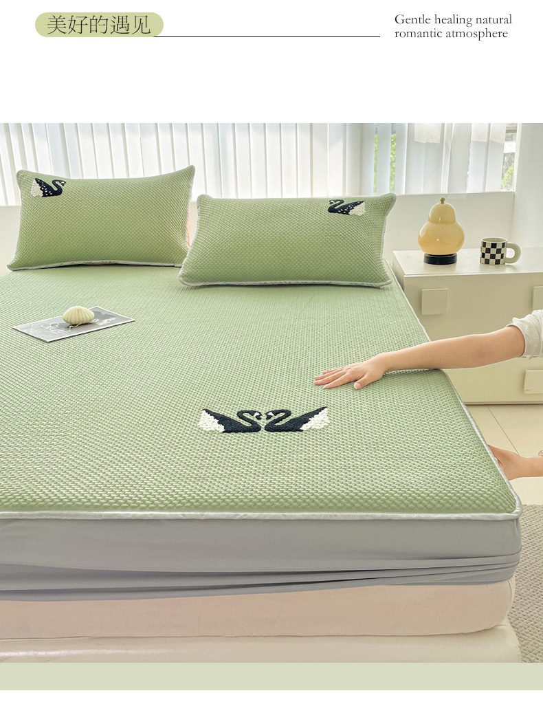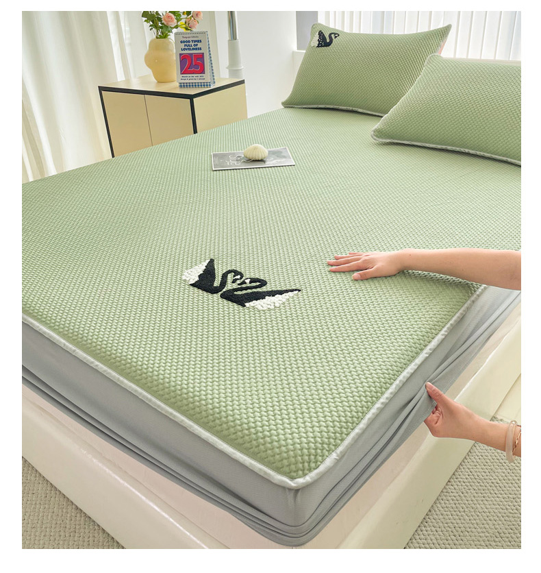 恋佳居2025新款A类乙伦PE凉豆豆毛巾绣床笠冰丝席(床笠款) 比翼双飞—绿