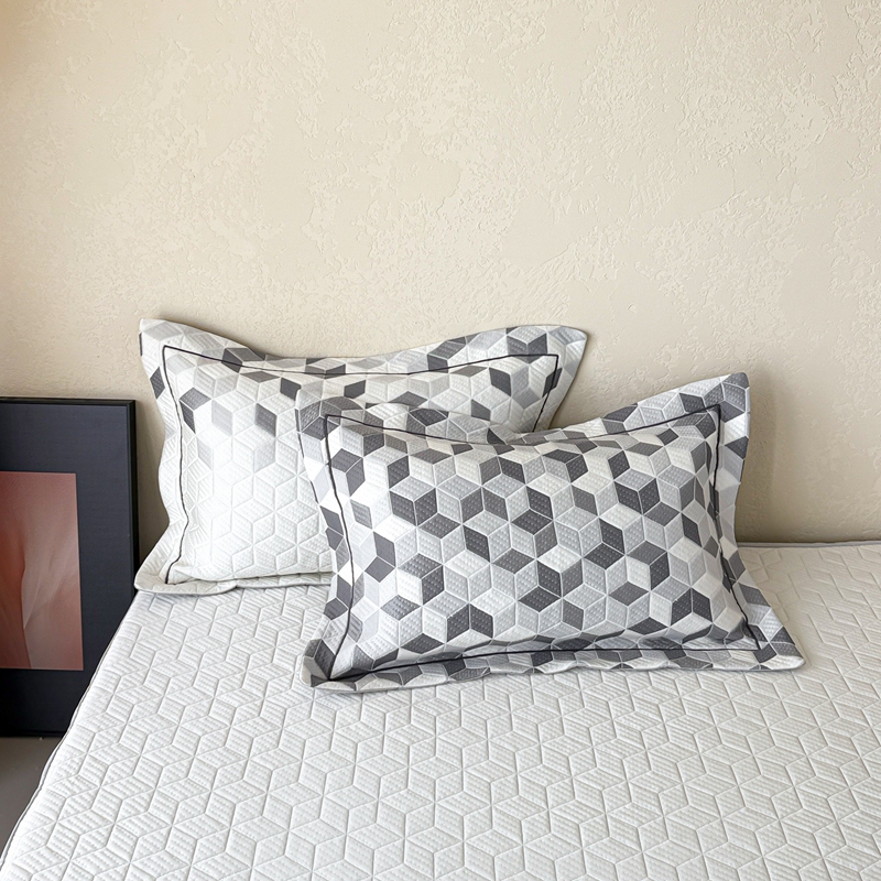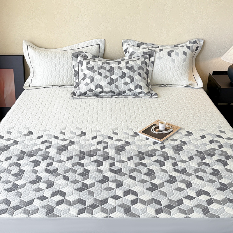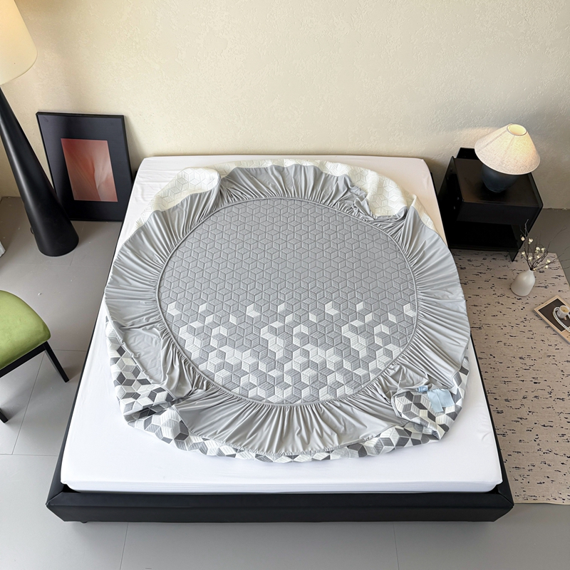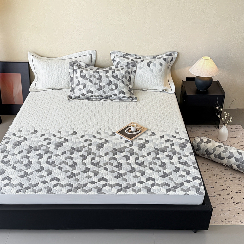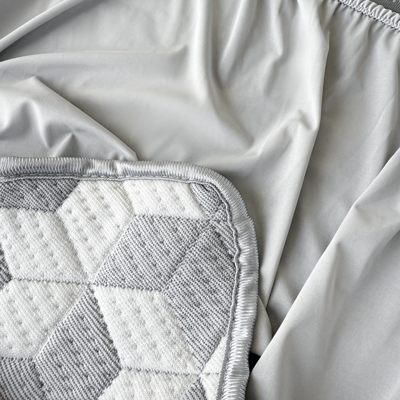 床上用品 > 床笠 > 若未家居 LOVEWE HOUSE 2025新款800克进口高分子100%乙纶PE冷凝凉感软席凉席渐变色织提花系列床笠-床笠款 魔方-白