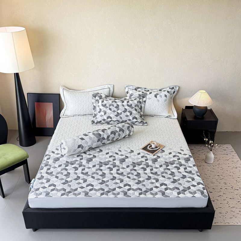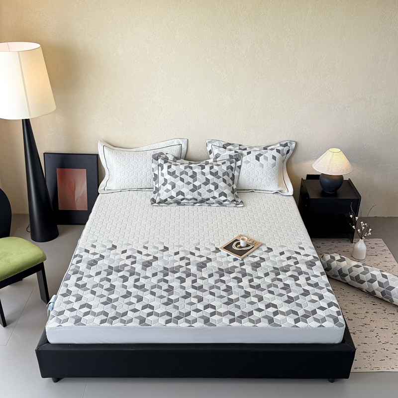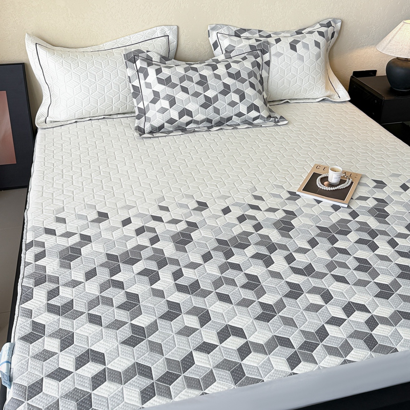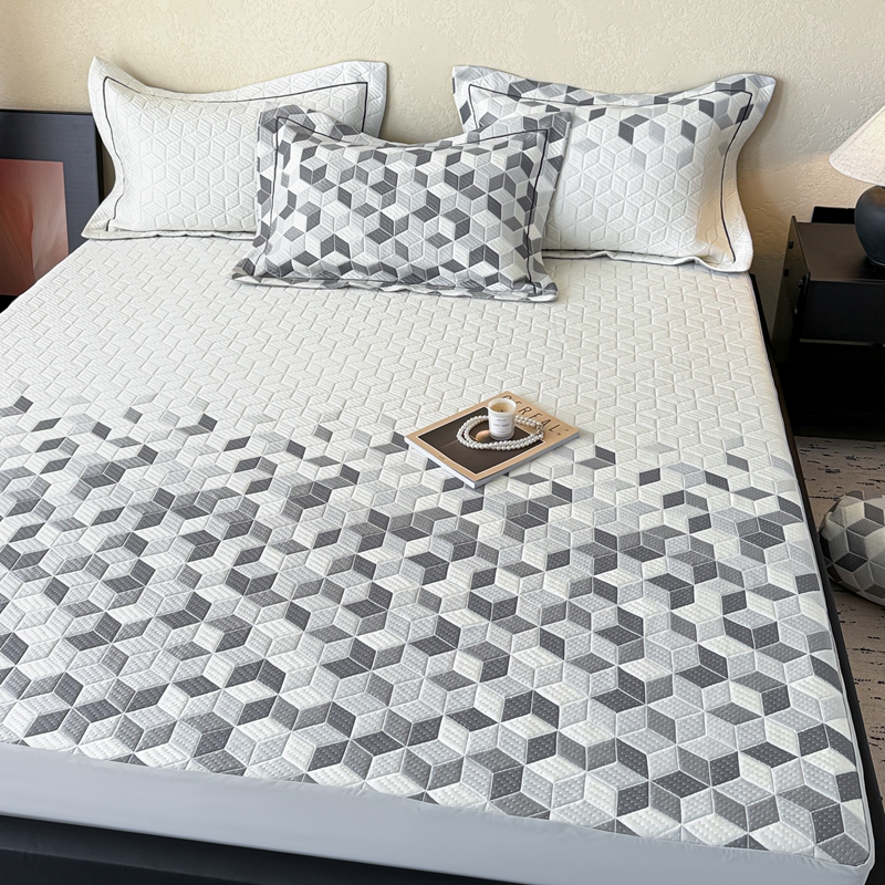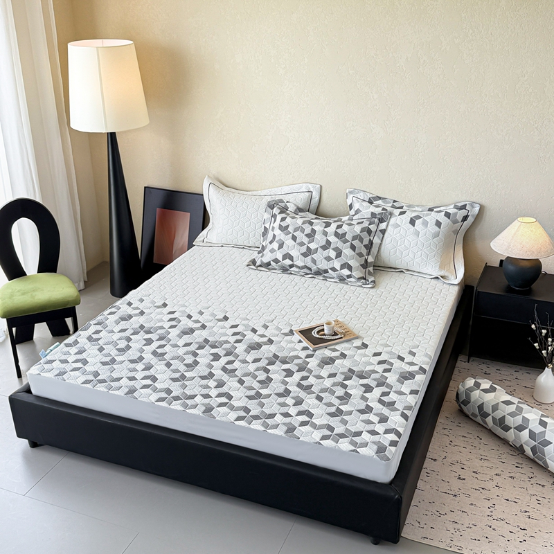 商品名称:若未家居 LOVEWE HOUSE 2025新款800克进口高分子100%乙纶PE冷凝凉感软席凉席渐变色织提花系列床笠-床笠款 魔方-白