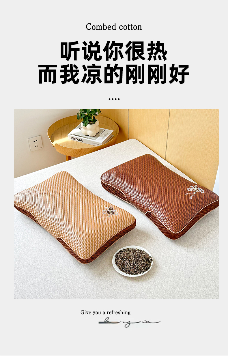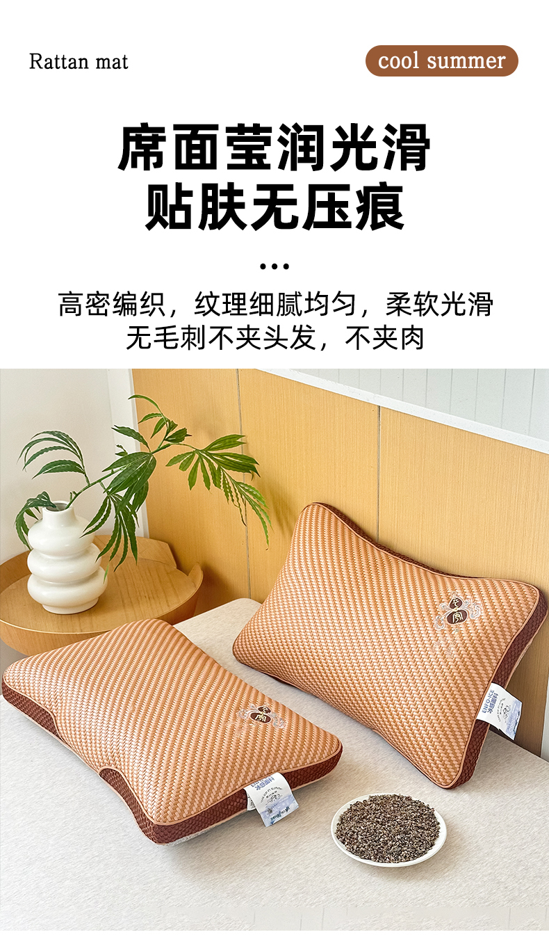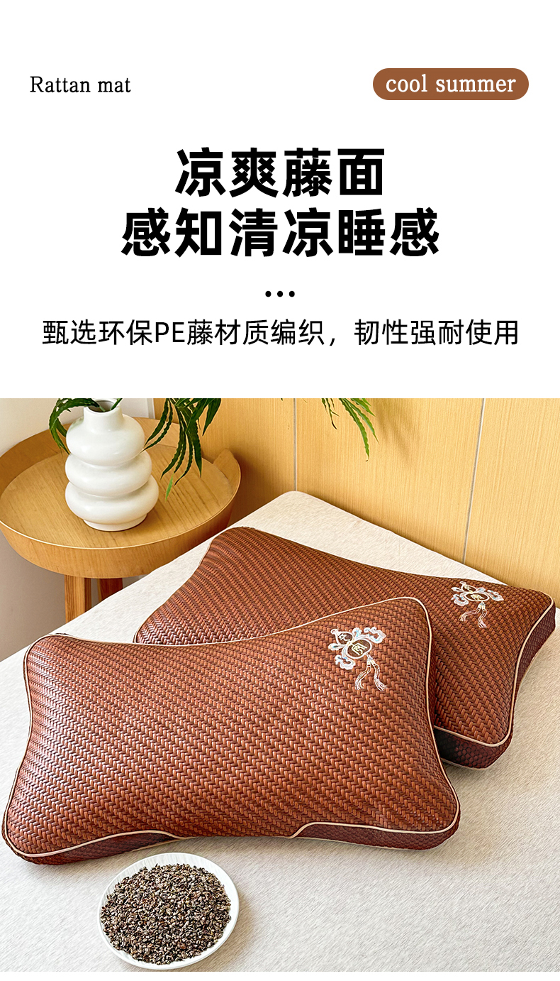 当前位置: 91家纺网 > 商品网购 > 居家日用 > 靠垫/抱枕 > 织布人 2025春夏新款荞麦枕夏季冰丝凉感PE藤夏凉枕茶叶枕成人家用颈椎枕硬枕单枕芯 立体PE藤双面枕-福临门【茶香枕】