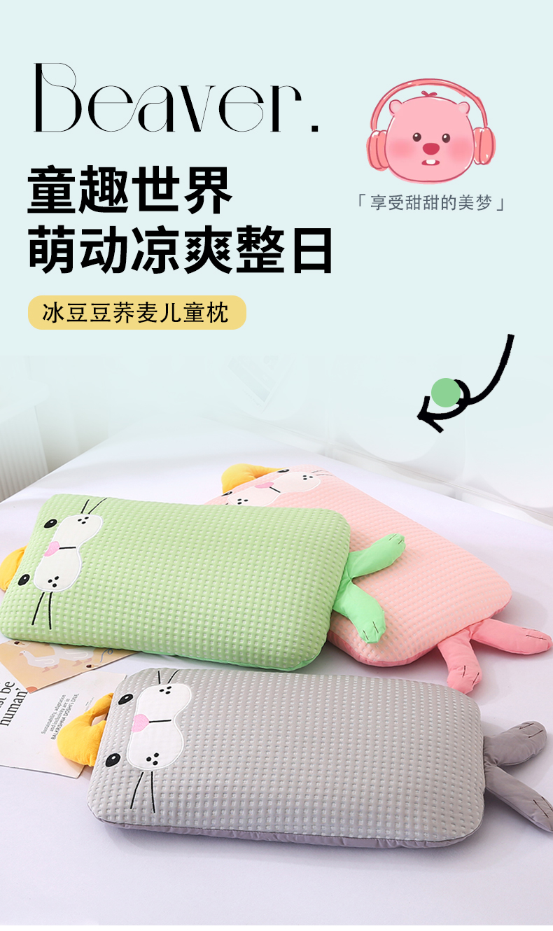 商品名称:蔻眠 小海狮-夏季凉感丝卡通荞麦枕头儿童学生防出汗专用枕芯 小海狮-绿色