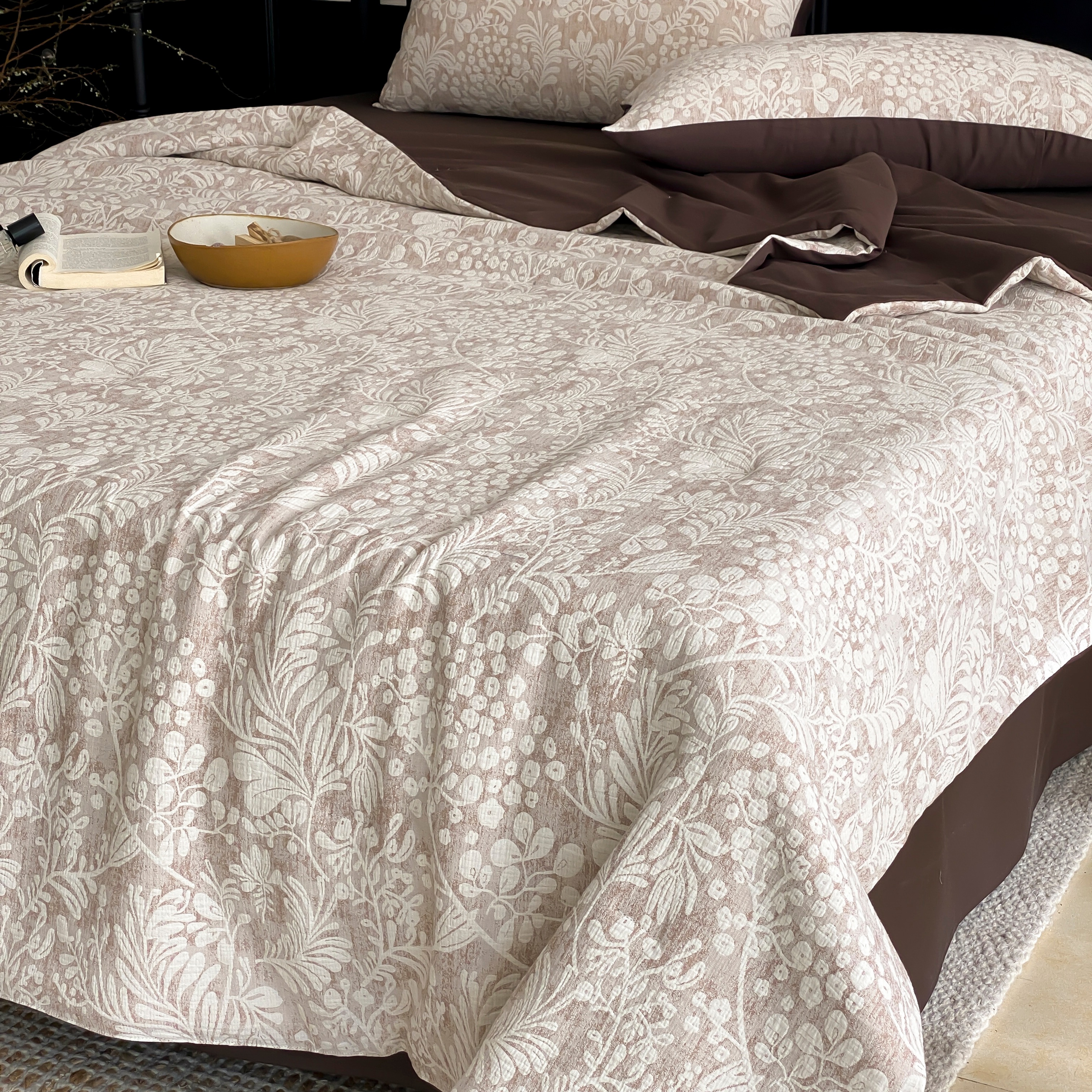 商品名称:赫帛 2025春夏新款全棉纯棉色织提花数码印花七草夏被夏凉被空调被 七草-紫色夏被