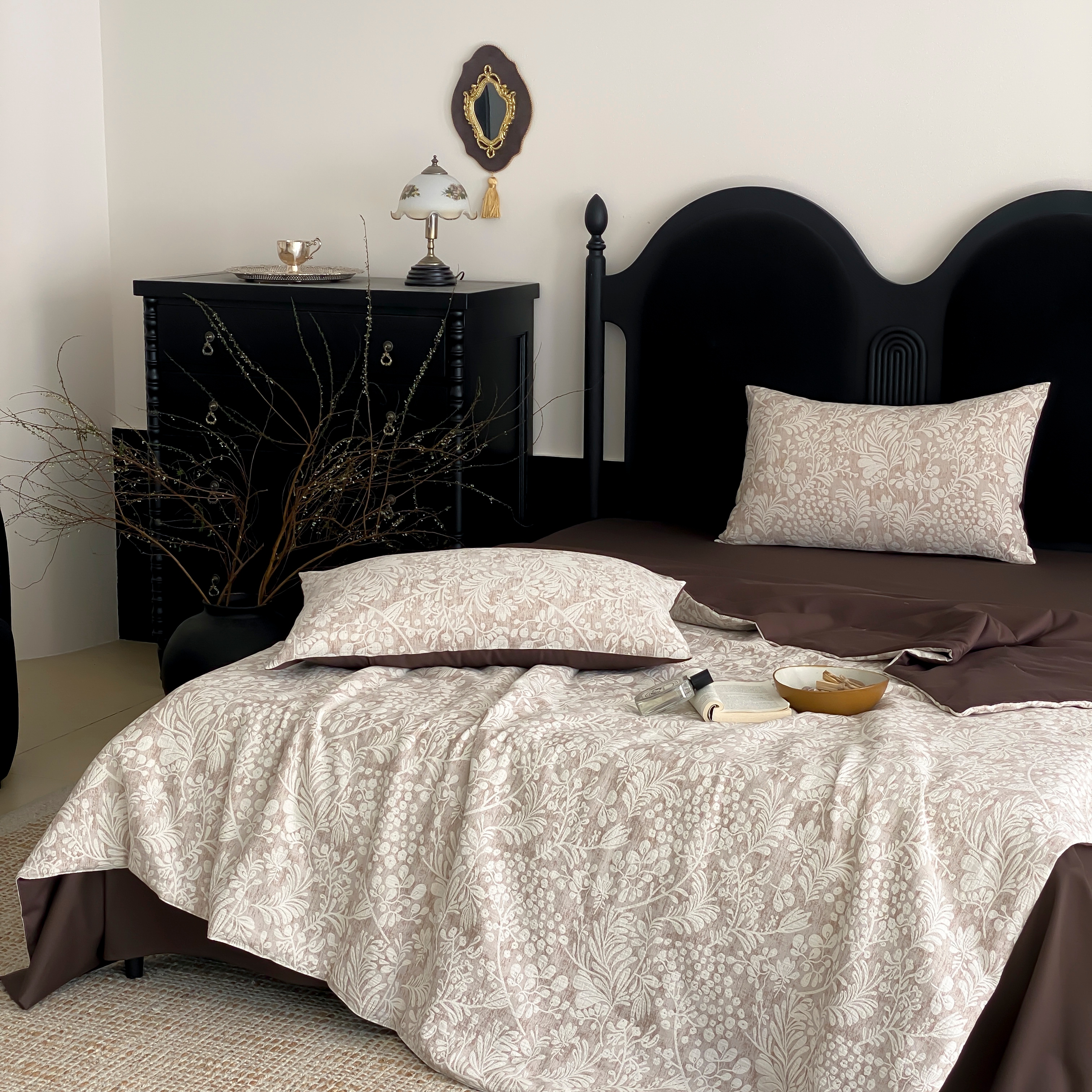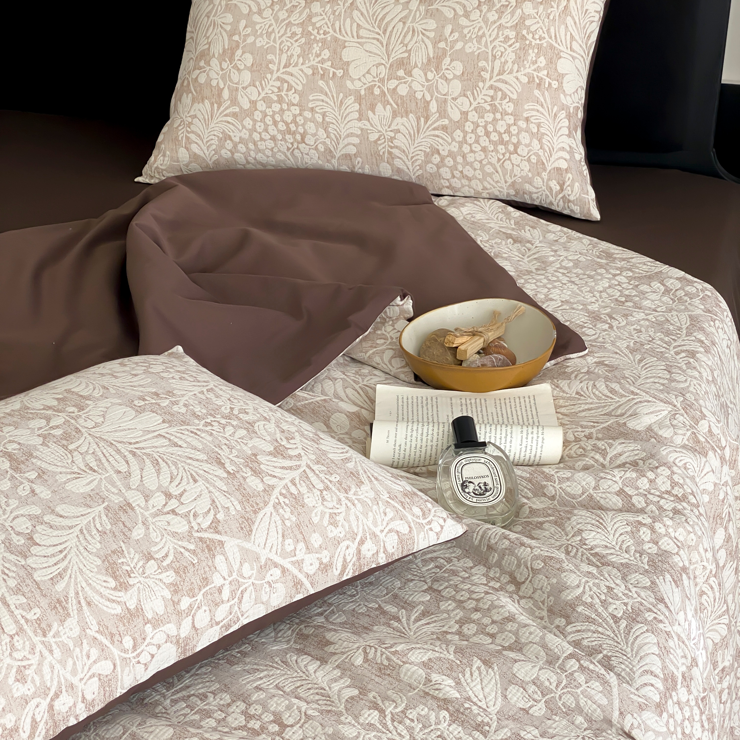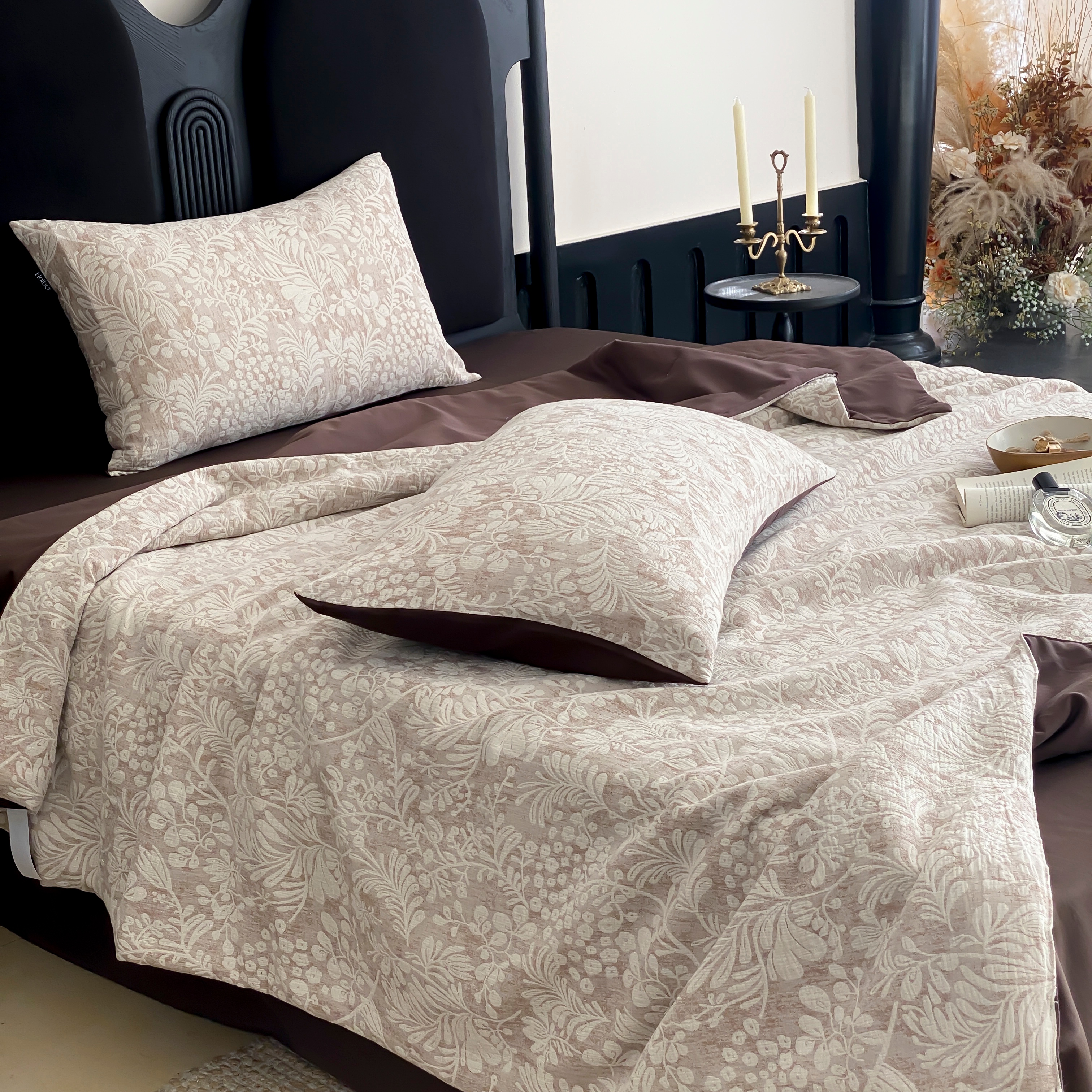 (总)赫帛 2026新款50s数码全棉轻磨毛四件套-暖叶,暖叶-粉色