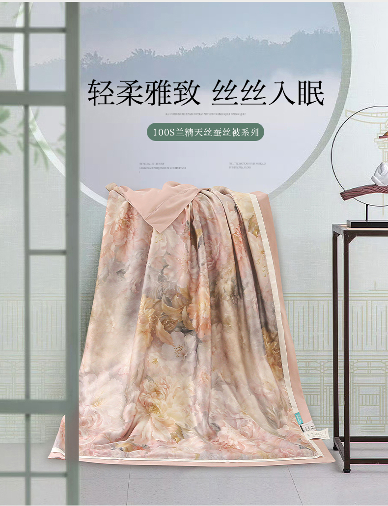 商品名称:薇玛仕 2025新款100支兰精天丝数码印花可水洗蚕丝夏凉被空调被 蒂芙尼 粉